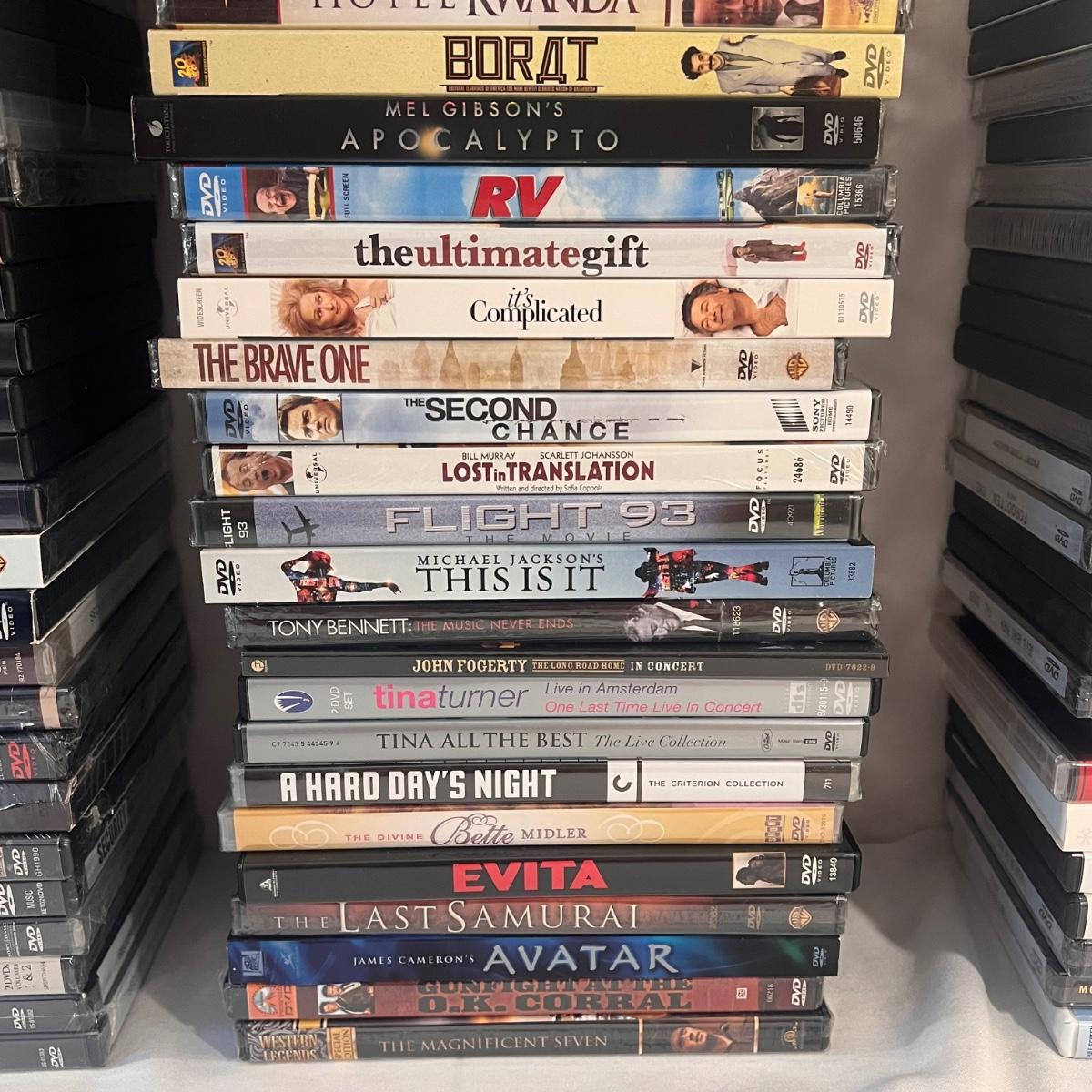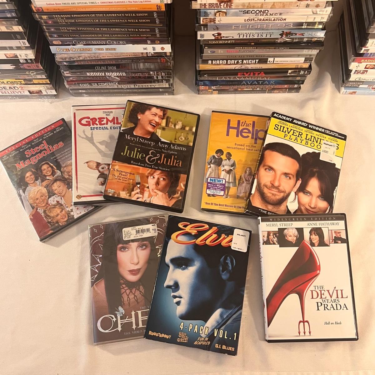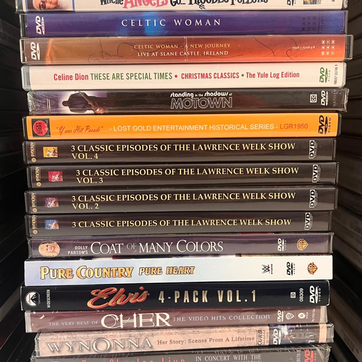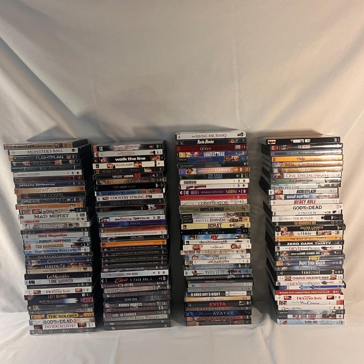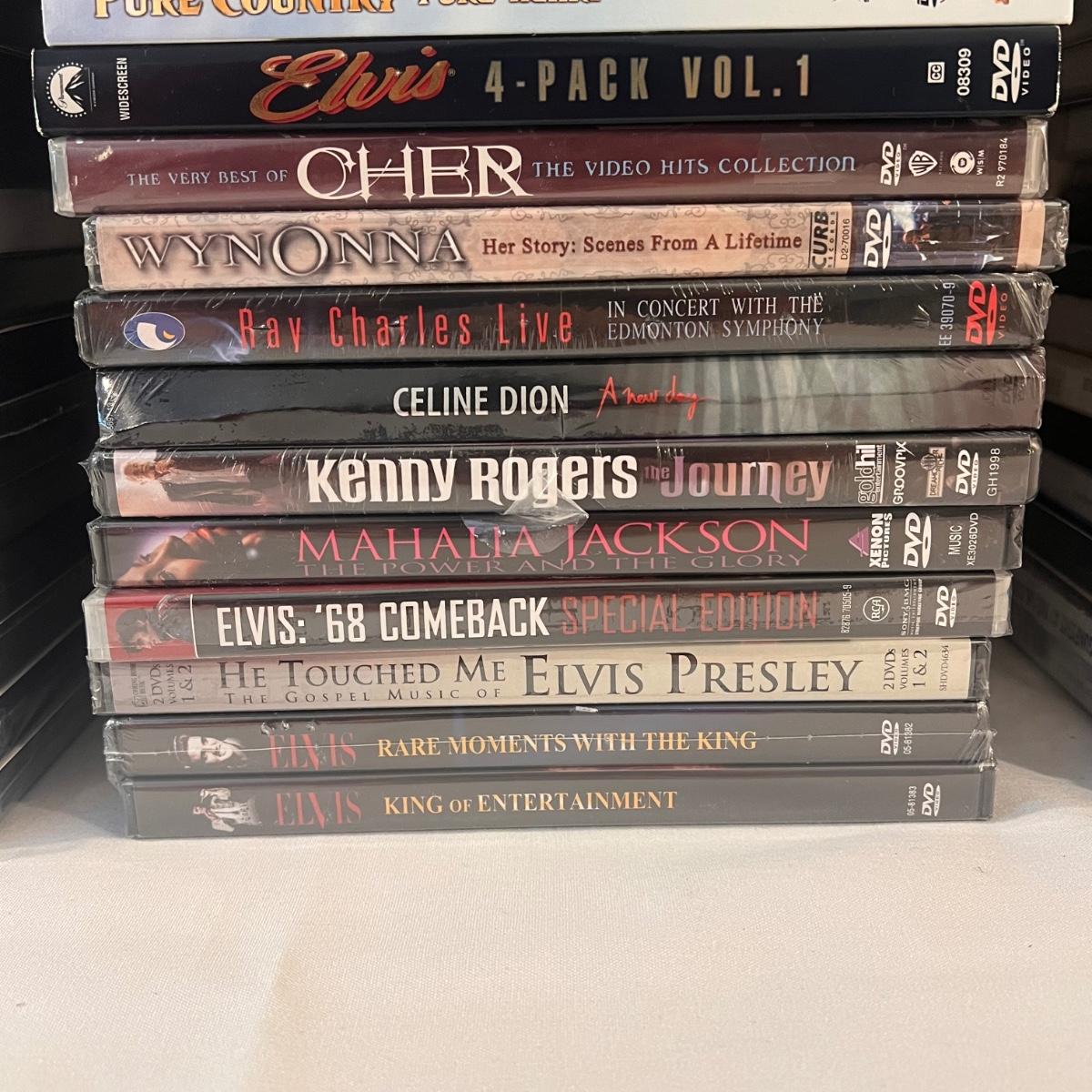 This lot includes over 100 DVD’s of various genres. There are several music themed DVDs, including films on Elvis and Cher. There are action packed movies, romantic comedies, and so much more. Shipping available.