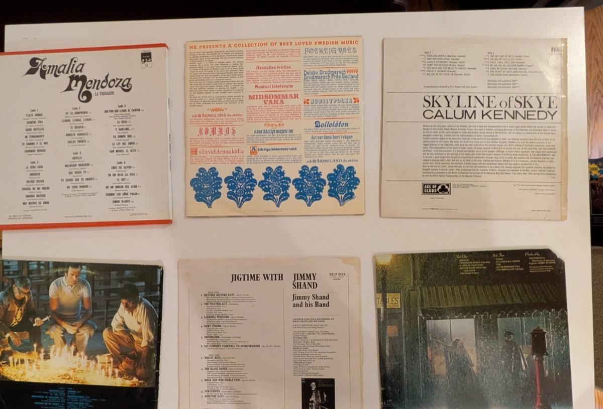 VG to VG+ overall. Some cover wear typical of age; vinyl appears clean to lightly played. Excellent selection of international, folk, and world-influenced music across regions: Mexico, Sweden, Scotland, and American pop.