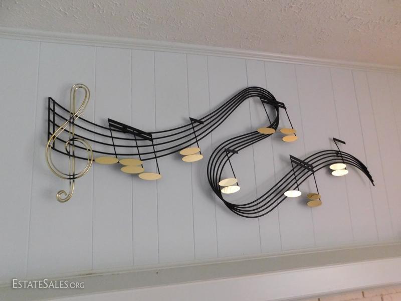 Large metal wire music staff with notes wall décor. Unique. Nice piece of wall art.