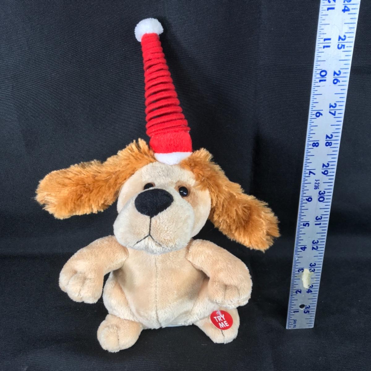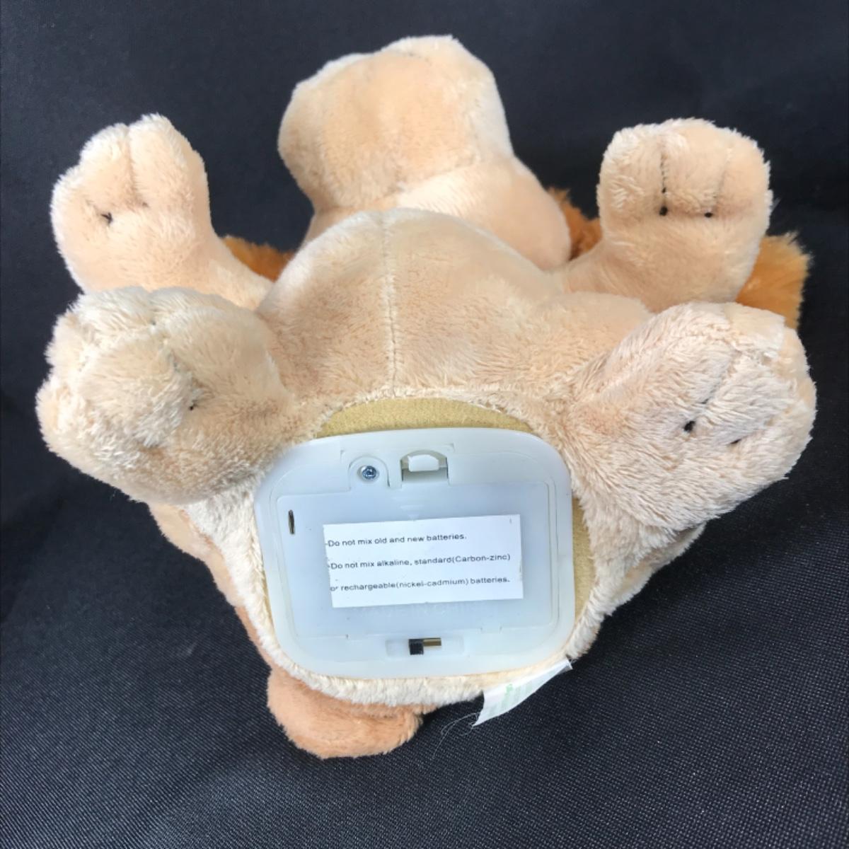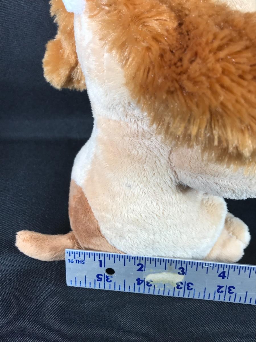 Measures approximately 12 inches tall. Item has been tested and works; batteries included. One small spot on rear of plush; see pictures.