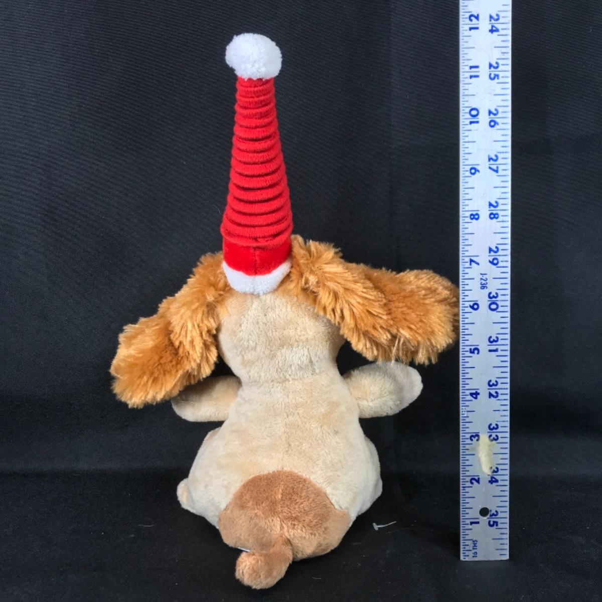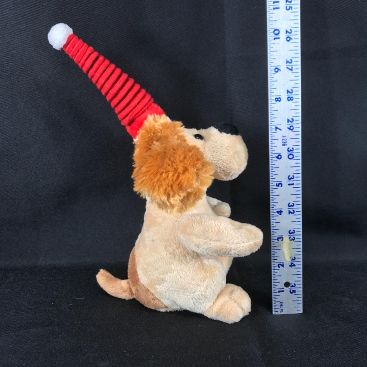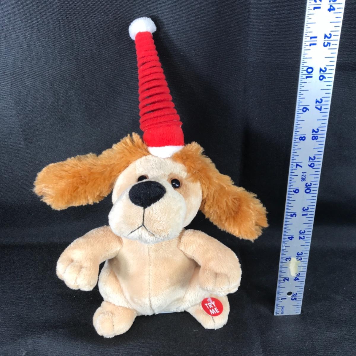 Measures approximately 12 inches tall. Item has been tested and works; batteries included. One small spot on rear of plush; see pictures.