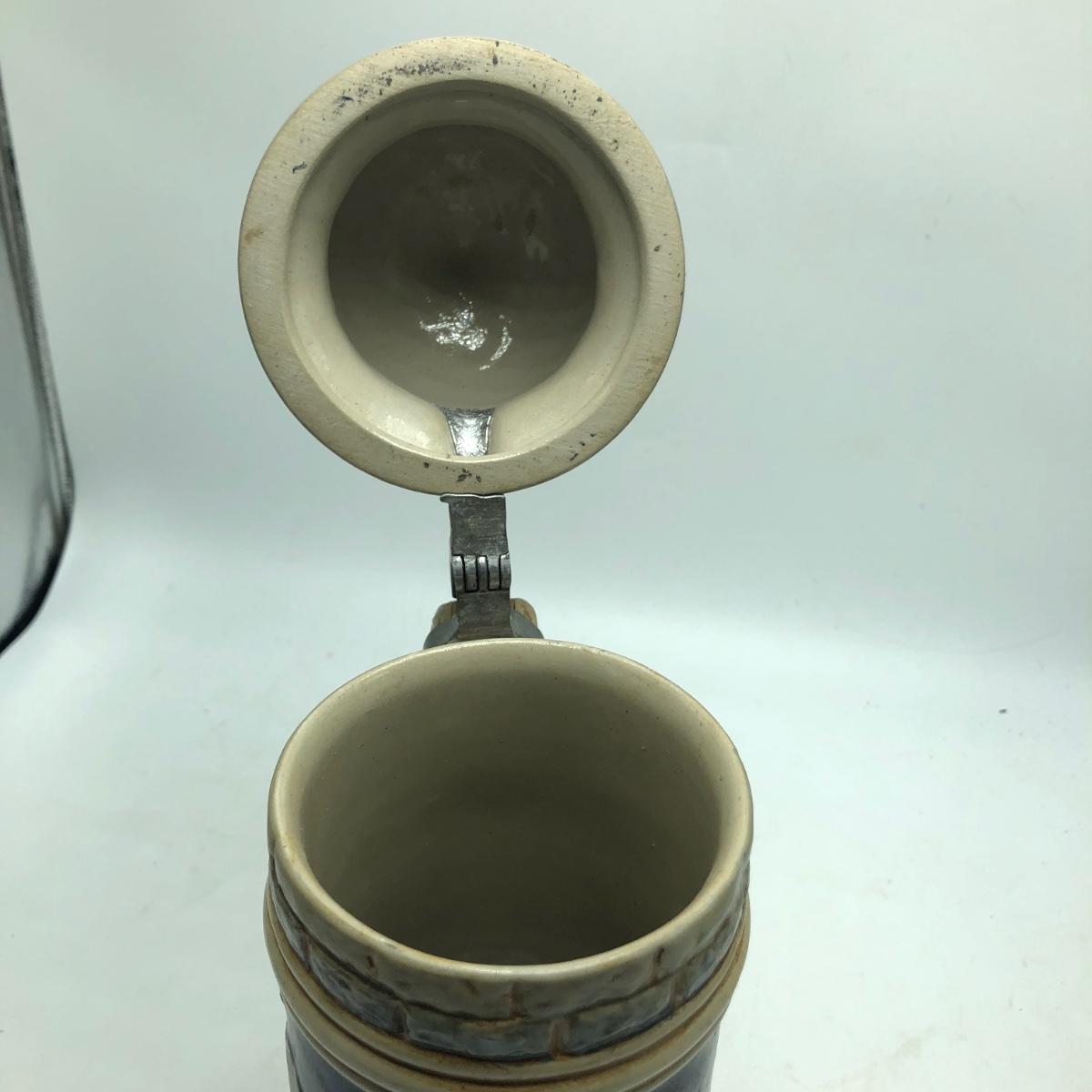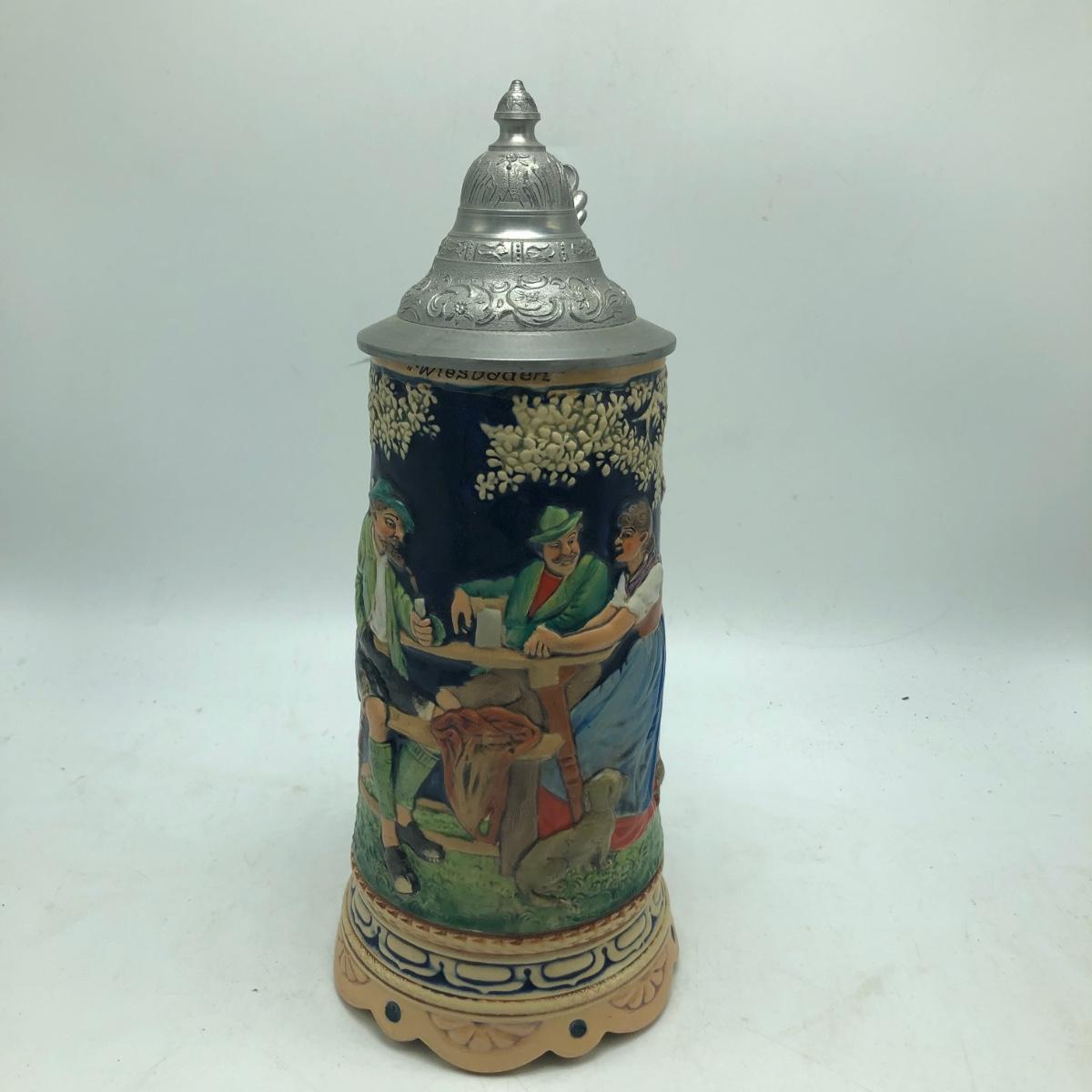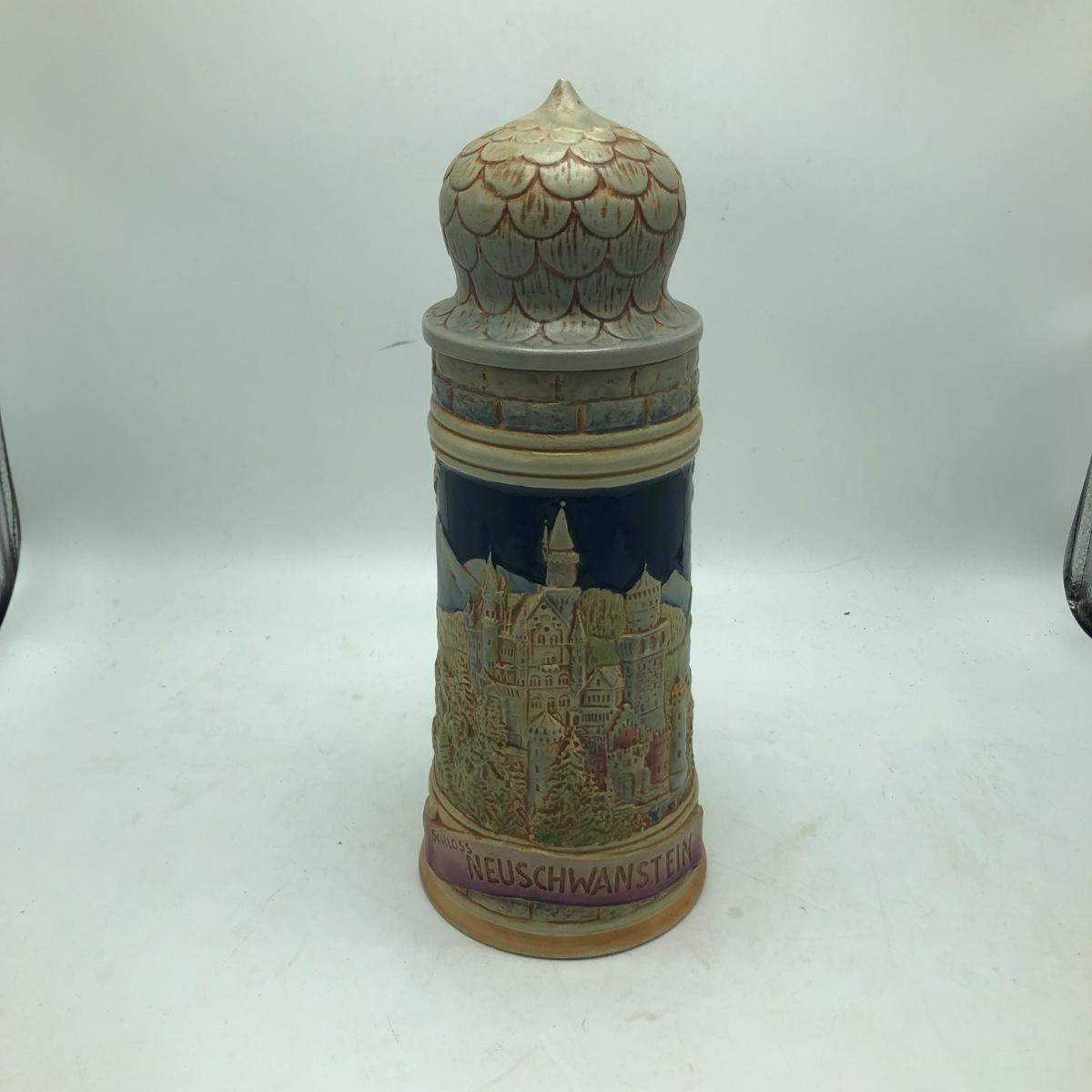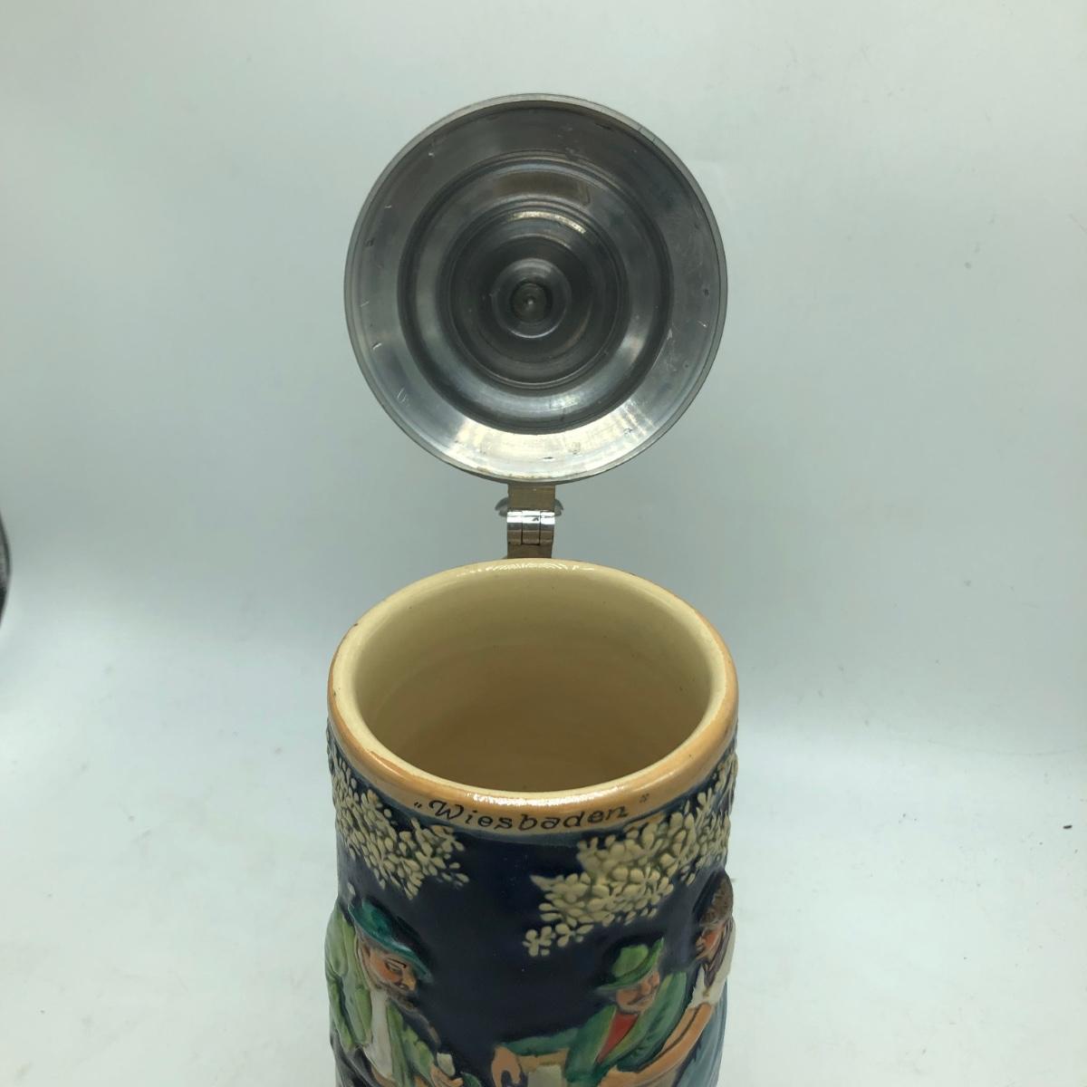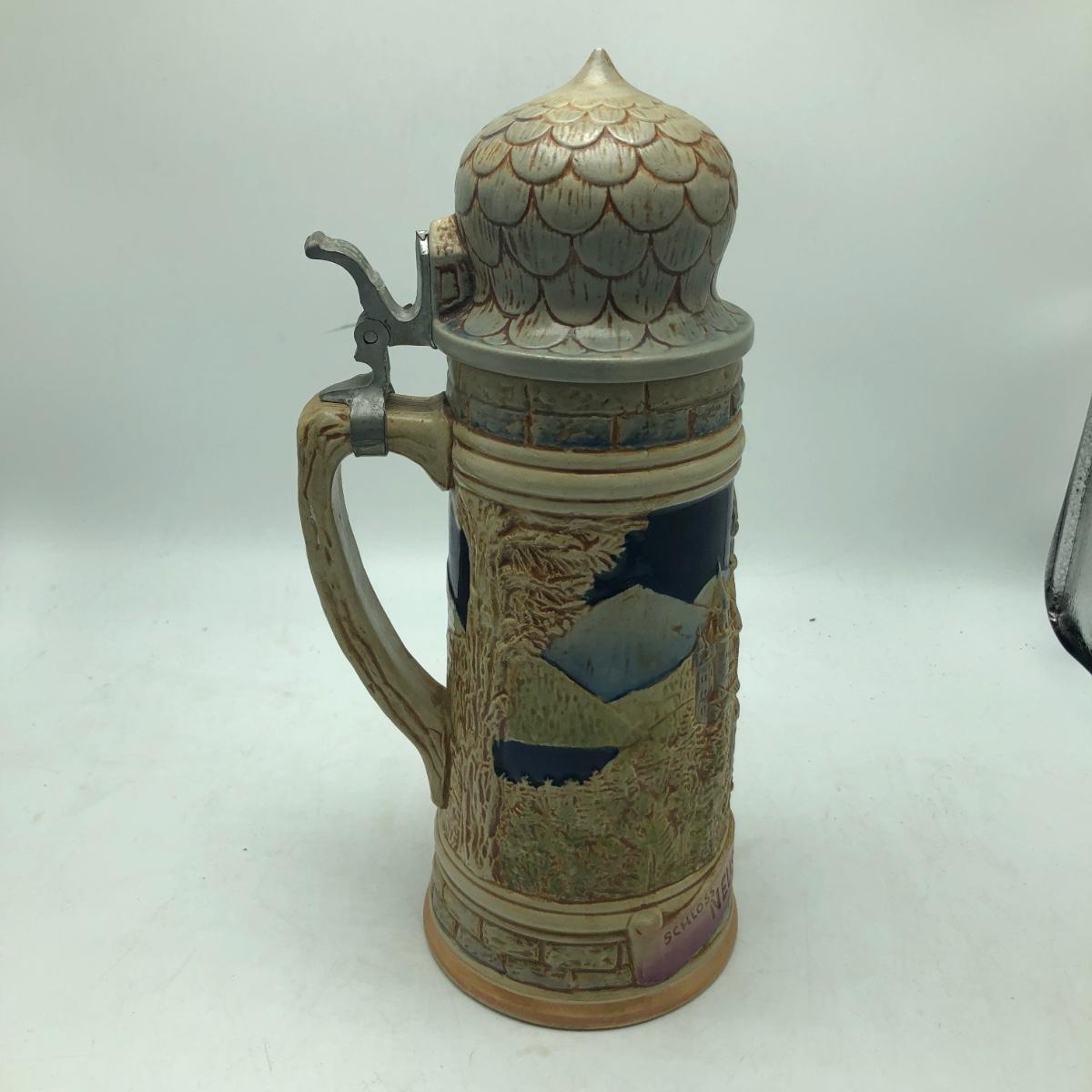 Lot includes a musical beer stein that plays Harry Line theme and a Goebel brand German stein. Tallest stein measures 4.5” x 6” x 12”.