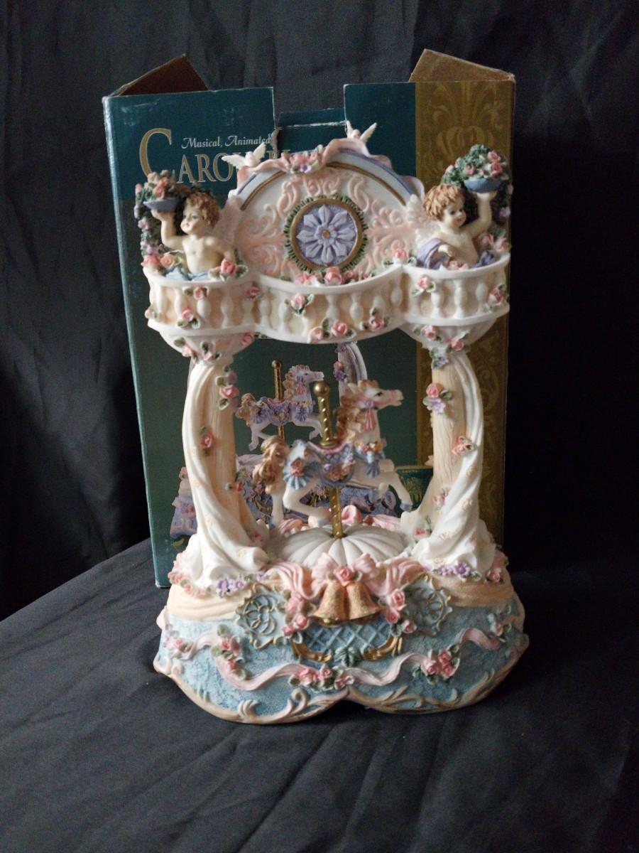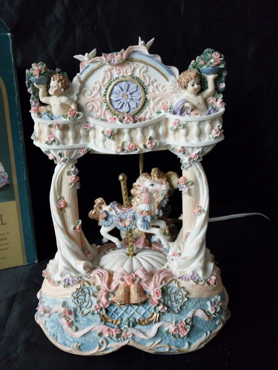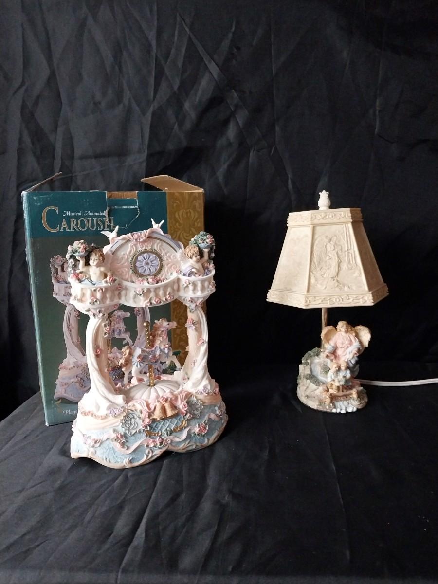 MUSICAL CAROUSEL AND LAMP WITH SHADE THAT SHOWS PICTURES WHEN LAMP ON