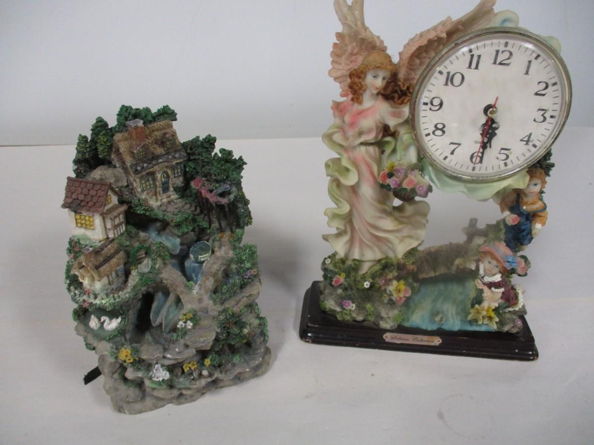 Musical Cottage Water Fountain & Angel Clock