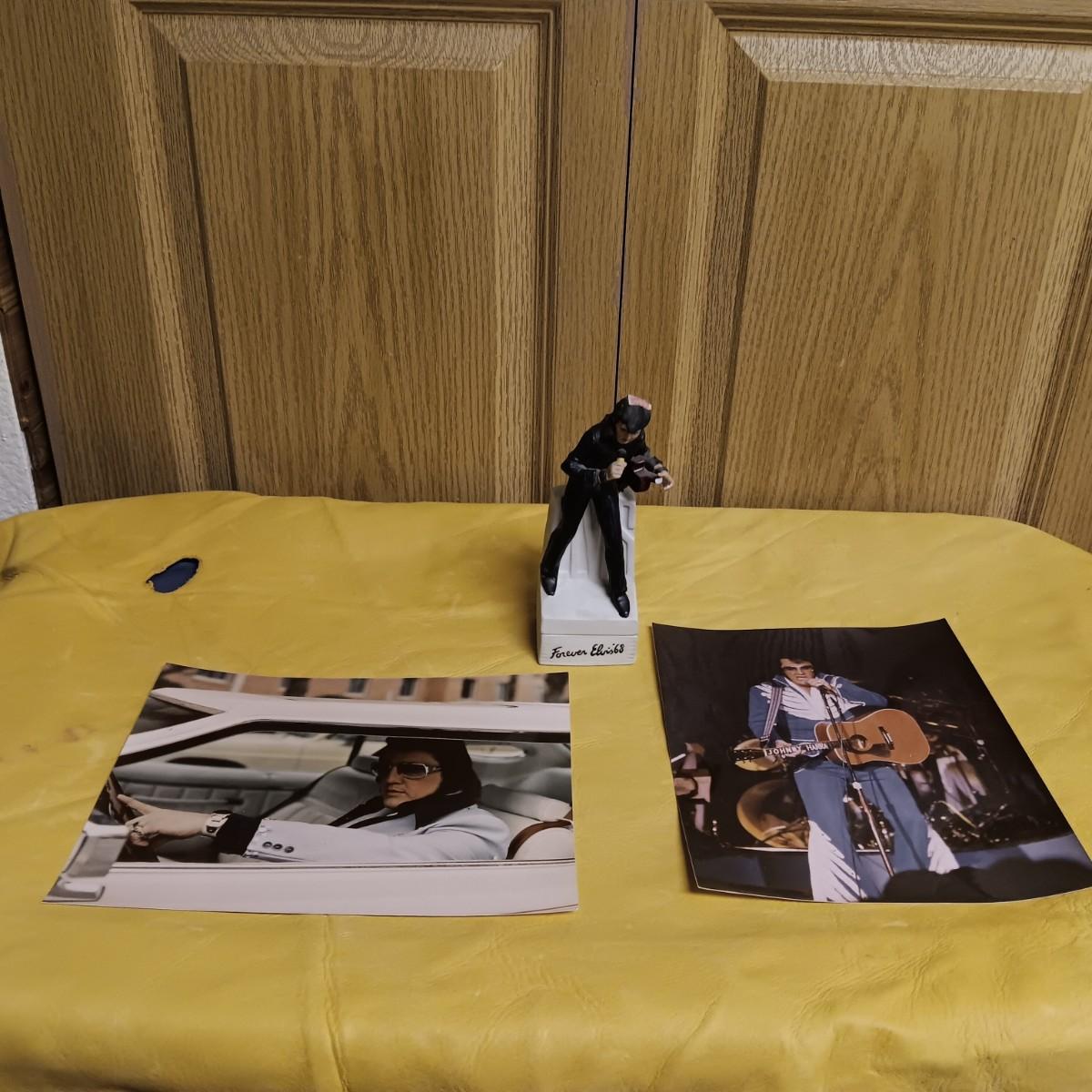 MUSICAL ELVIS PRESLEY DECANTER AND 2 PHOTOS
