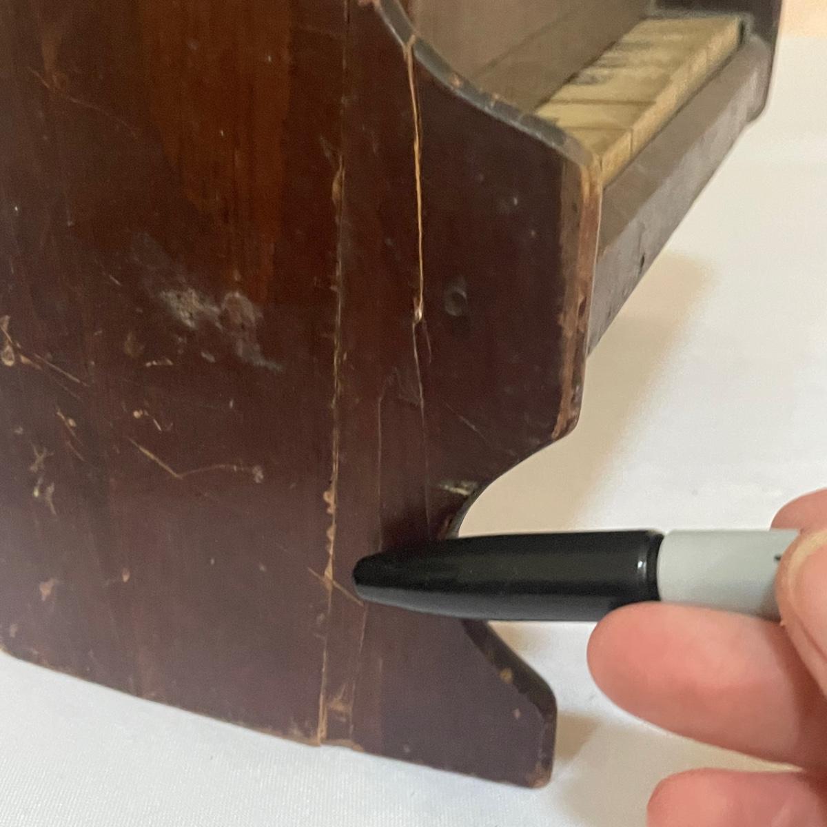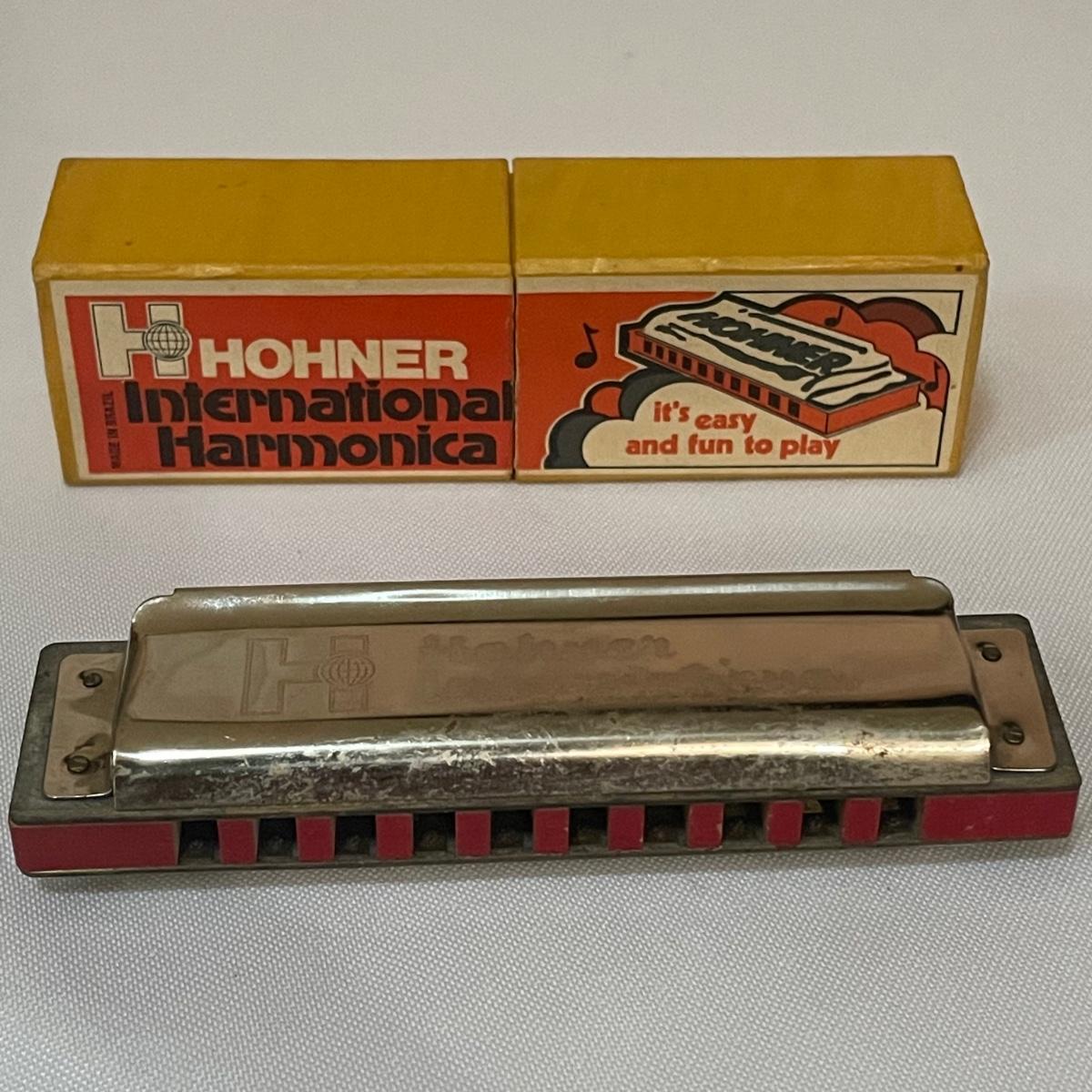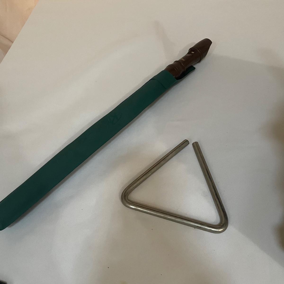 This musical assortment includes a currently not working plastic metronome which is possibly over wound, metal flute, plastic recorder, a lovely wood/metal tambourine, a unique miniature piano with a split in the wood and not all the keys make notes as they are missing pieces, see images, it measures 9” x 5” x 7”. Lot also includes a Hohner International Harmonica and an Encyclopedia of the Great Composers and Their Music.