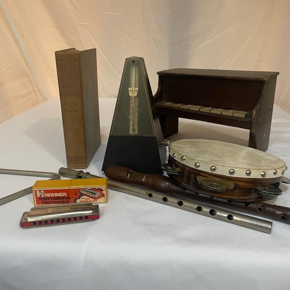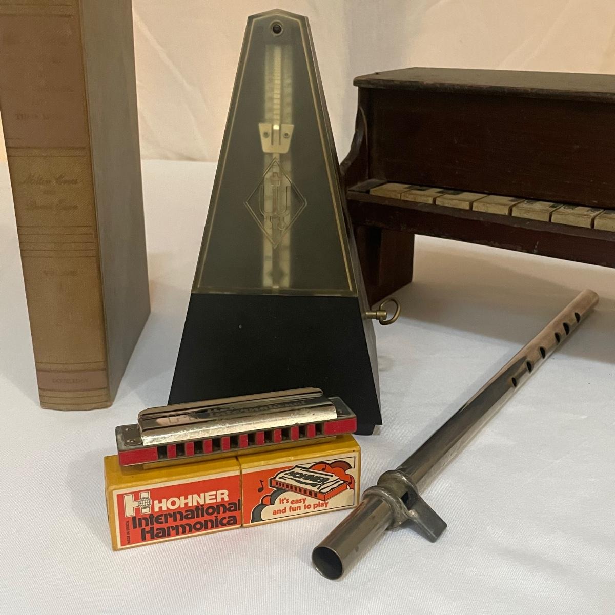 Musical Instruments, Metronome, Book & Vintage Miniature Piano (LR-RG)