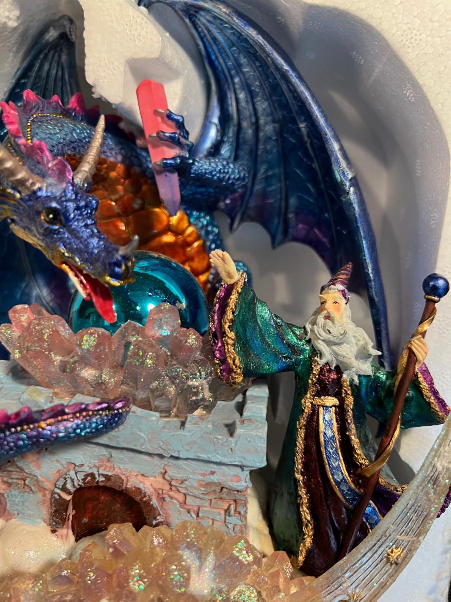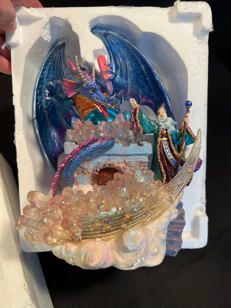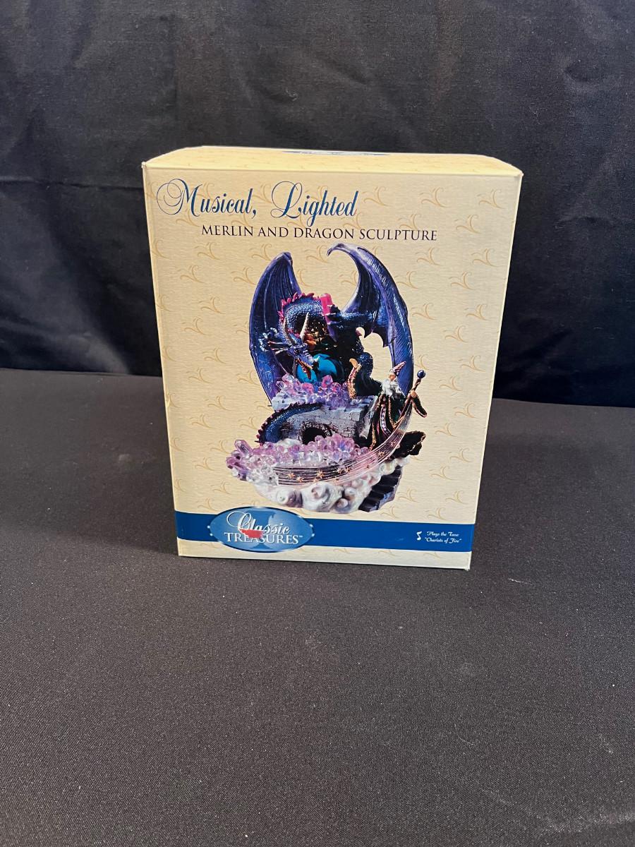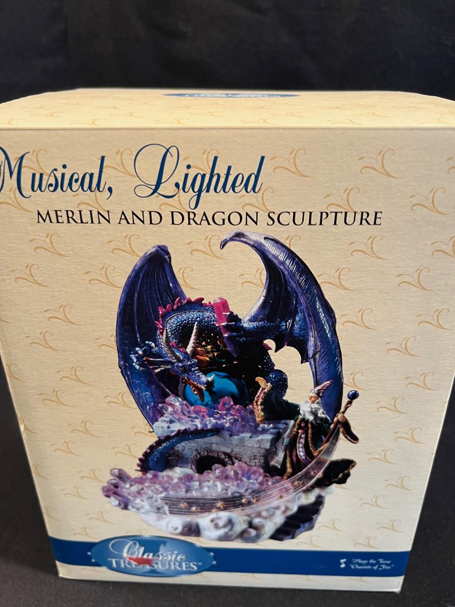 Musical Lighted Merlin and Dragon Sculpture, In Original Box