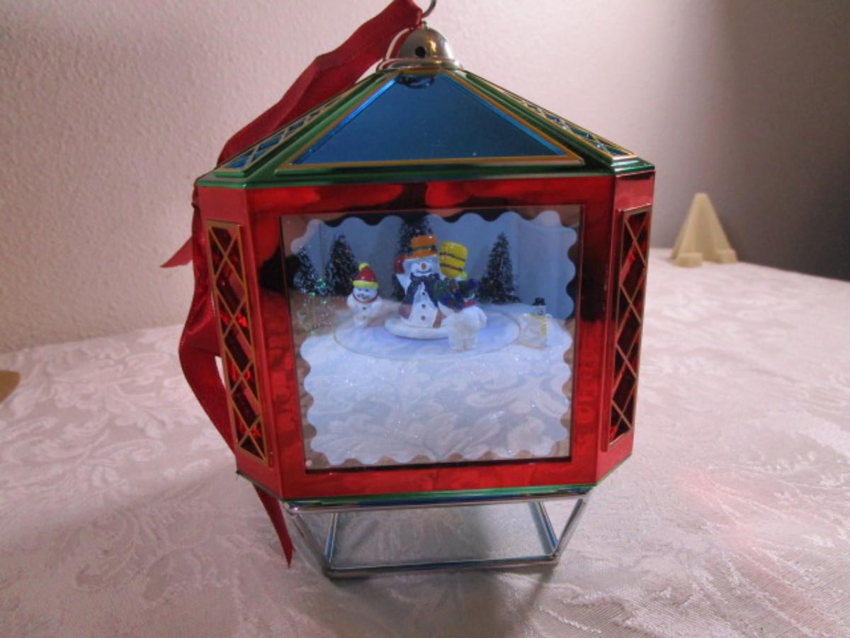 Needs 4 AAA batteries (included), has volume control, various carols, motion sensor, 6" tall x 4" x 4"