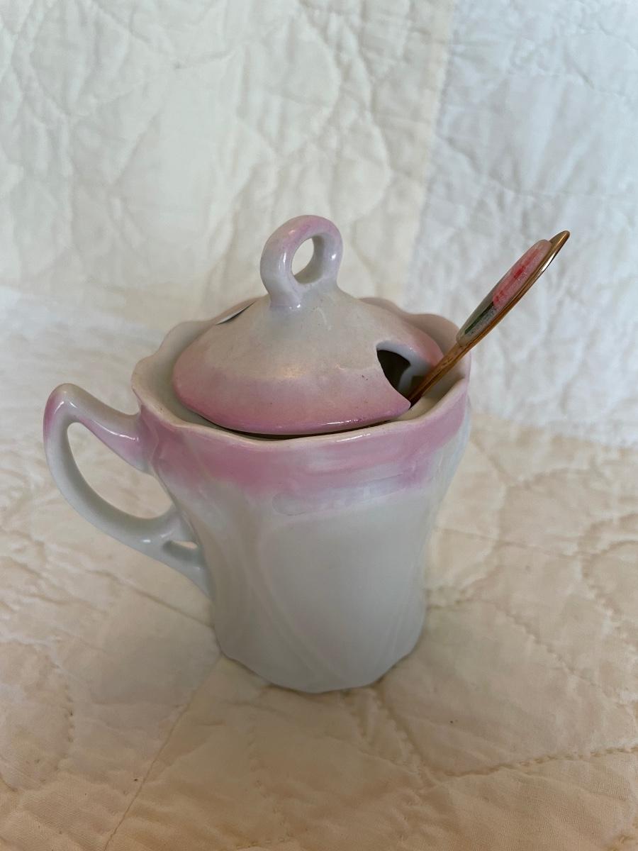 Mustard jar with flowers-soon-lid