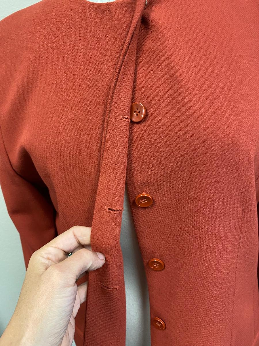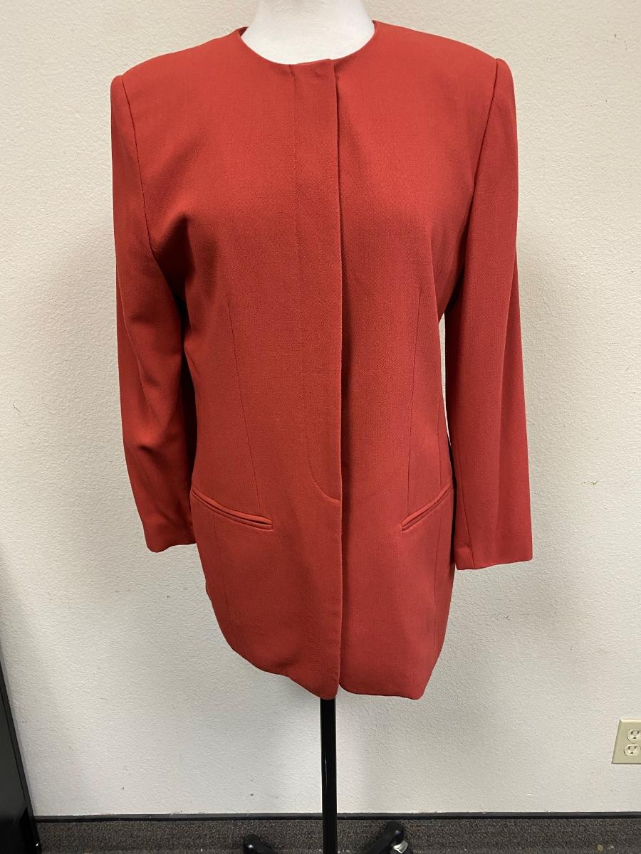 Muted Coral Red Two Piece Skirt & Suit Jacket by Amanda Smith