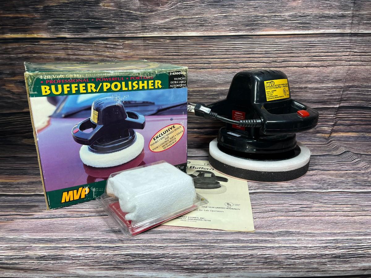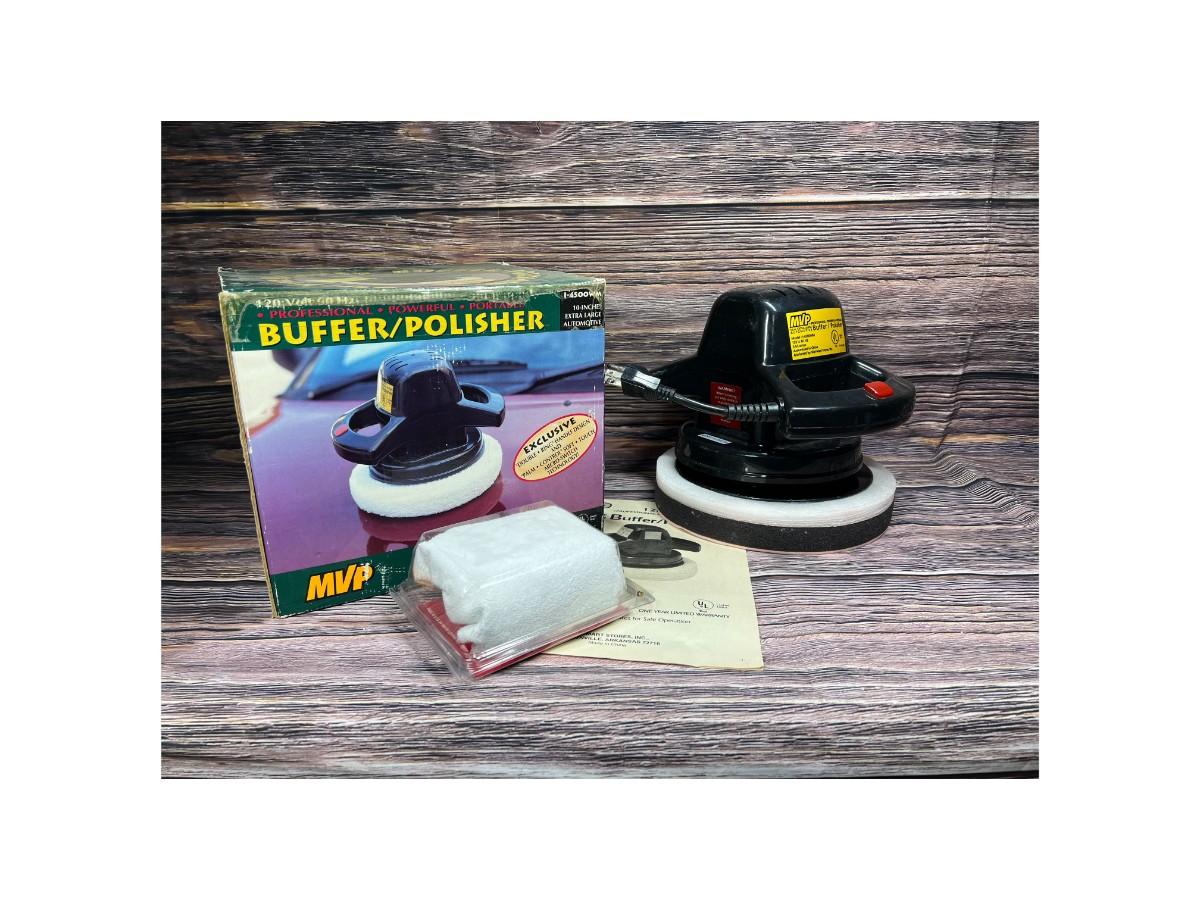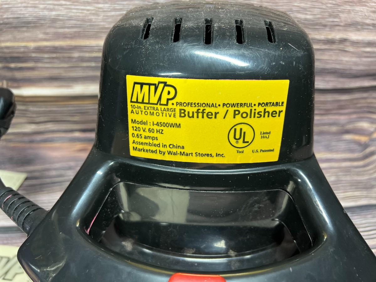 MVP 10 inch Extra Large Automotive Buffer Polisher, there are some signs of use to the buffer, but there is no significant damage and is in good useable condition. Powers on when plugged, check pictures for more details and for sizing.