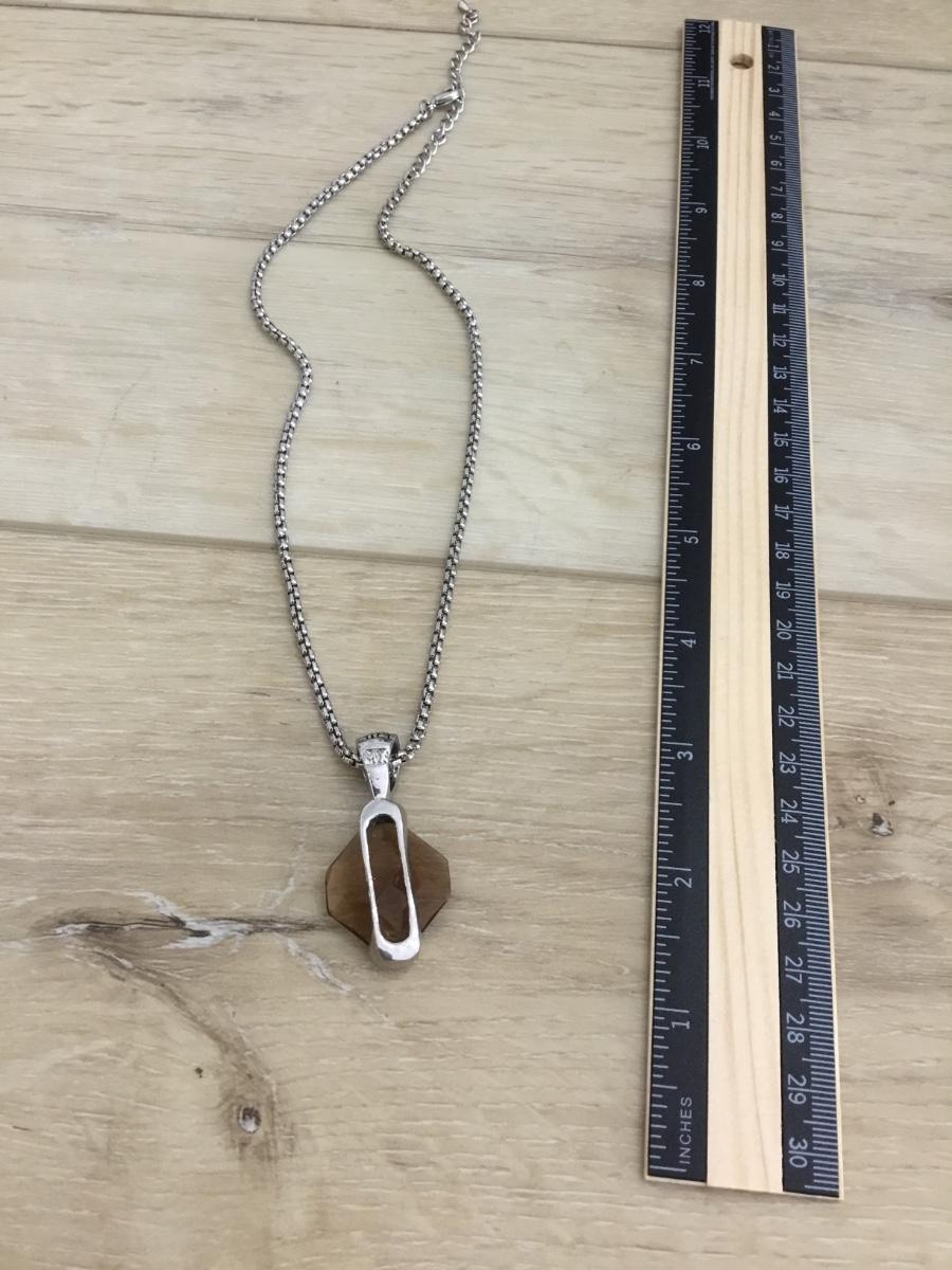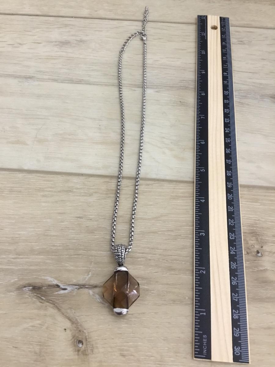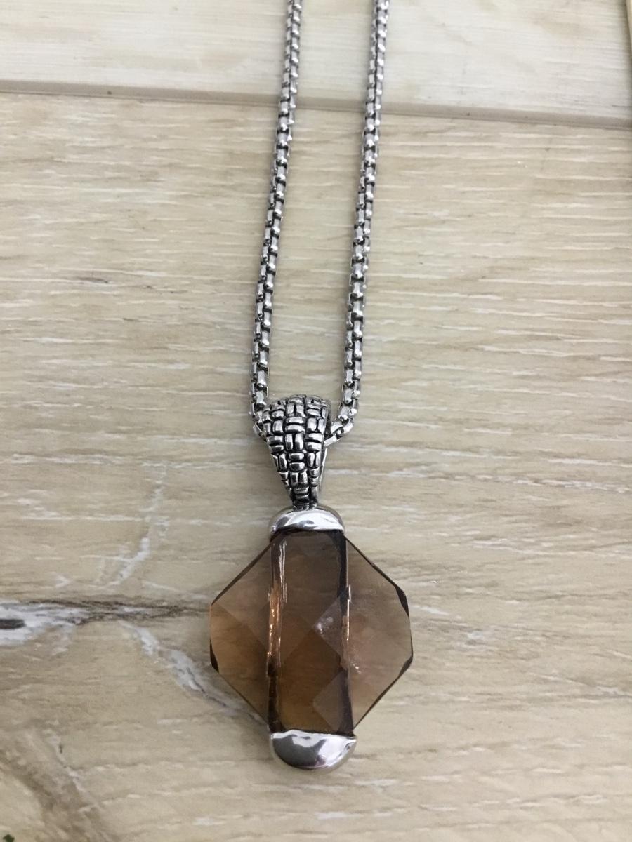 MX designer Silver tone with with smoky quartz, crystal pendant