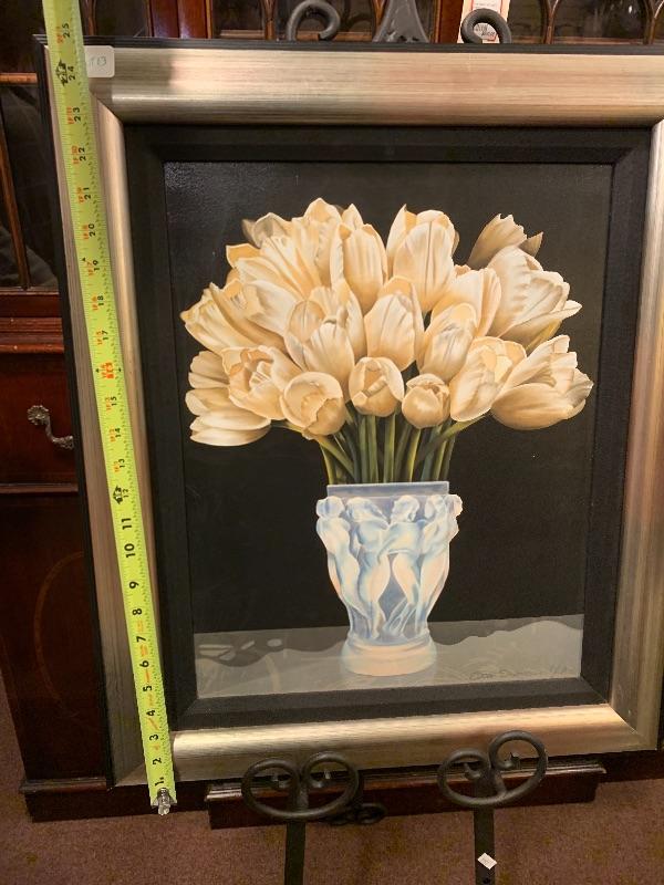 My 13 - Ora Sorenson framed signed giclée white Tulips
