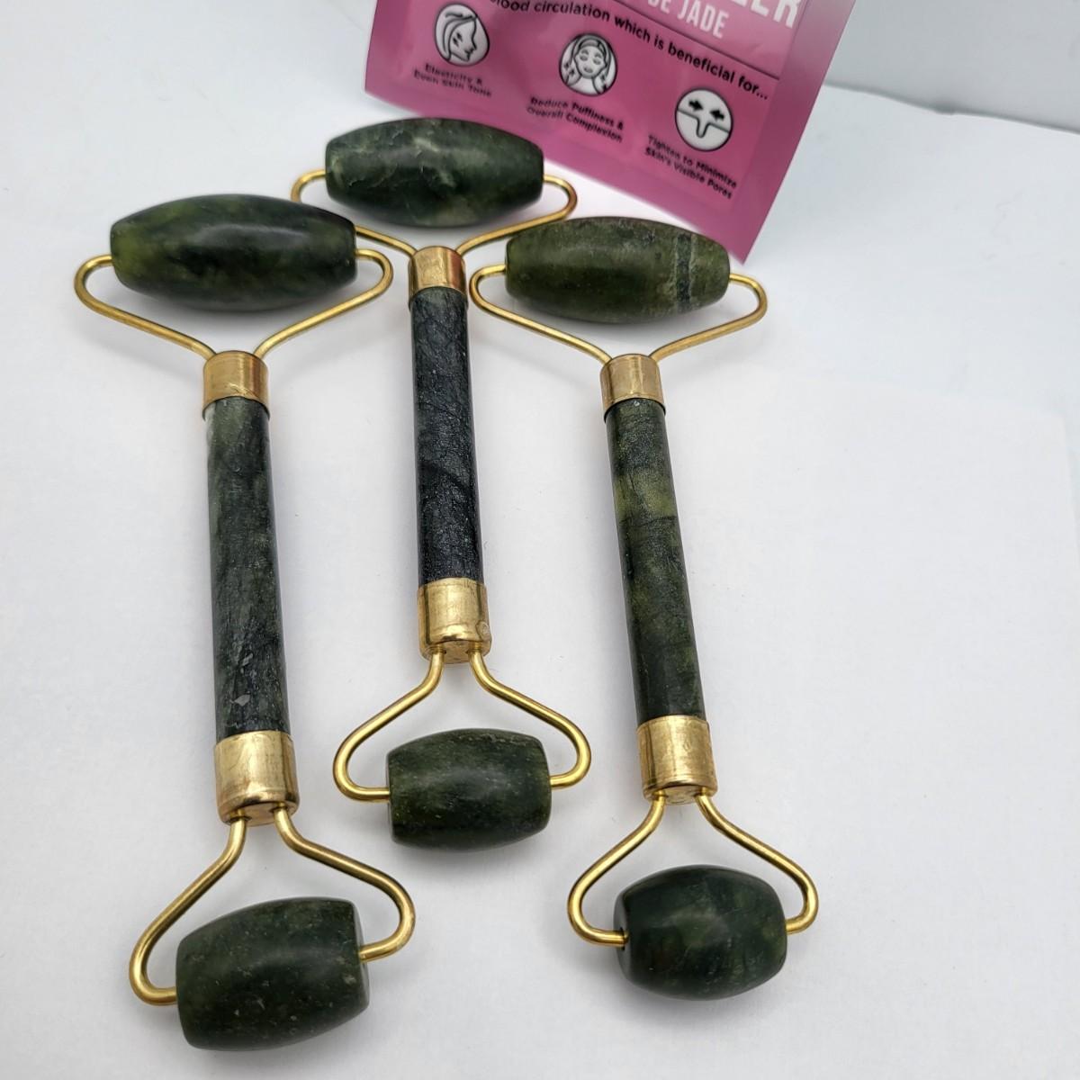 Jade stone facial beauty rollers. One is sealed in package and three are loose.