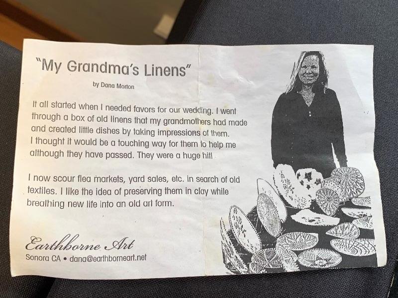 My Grandmas Linen ceramic dish