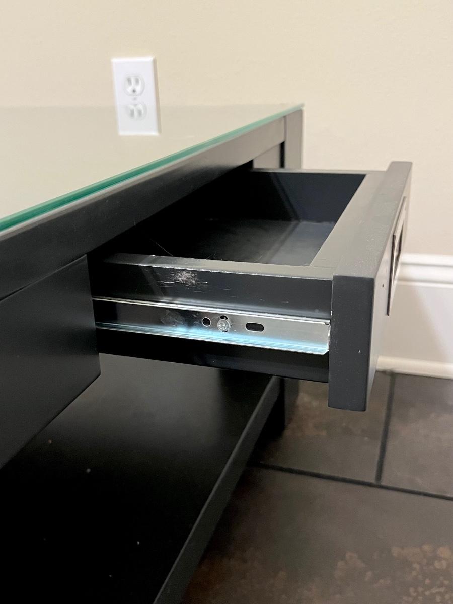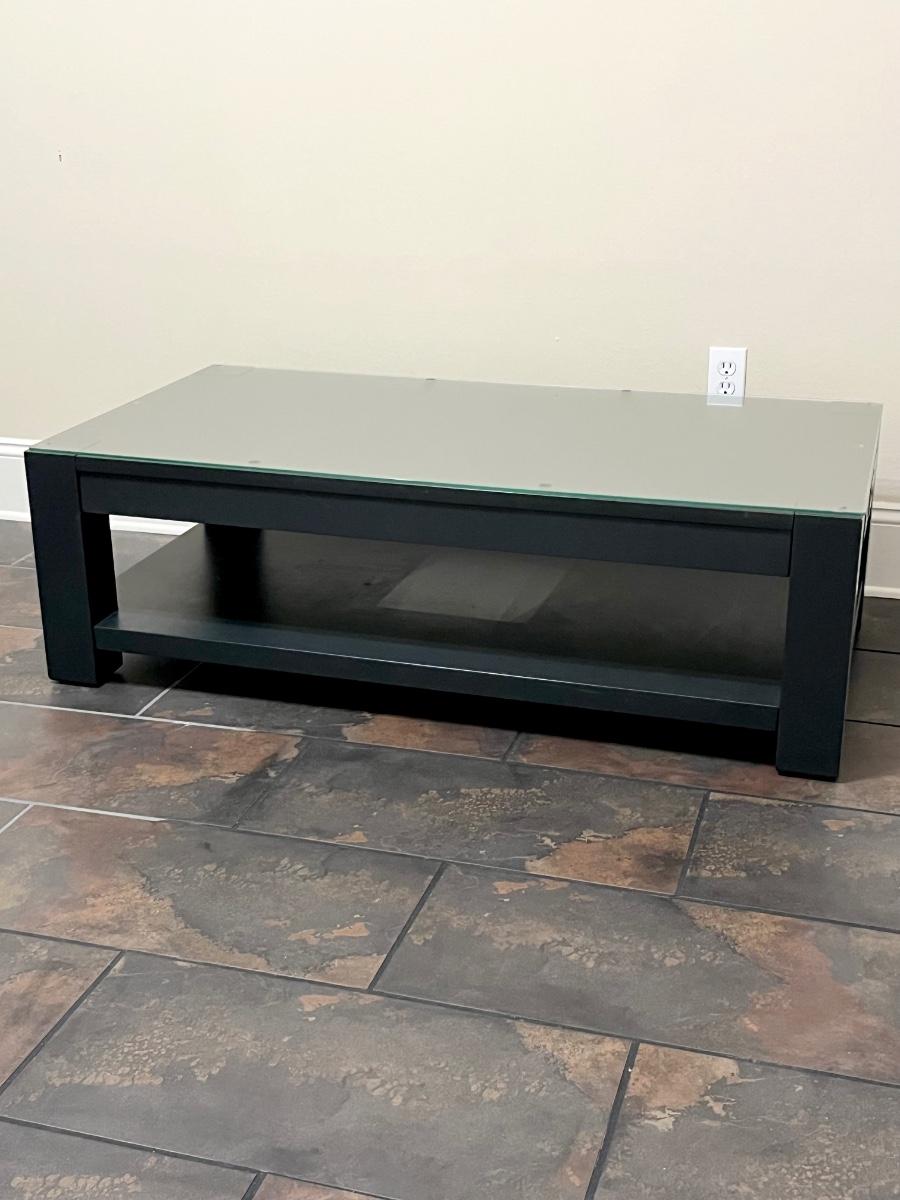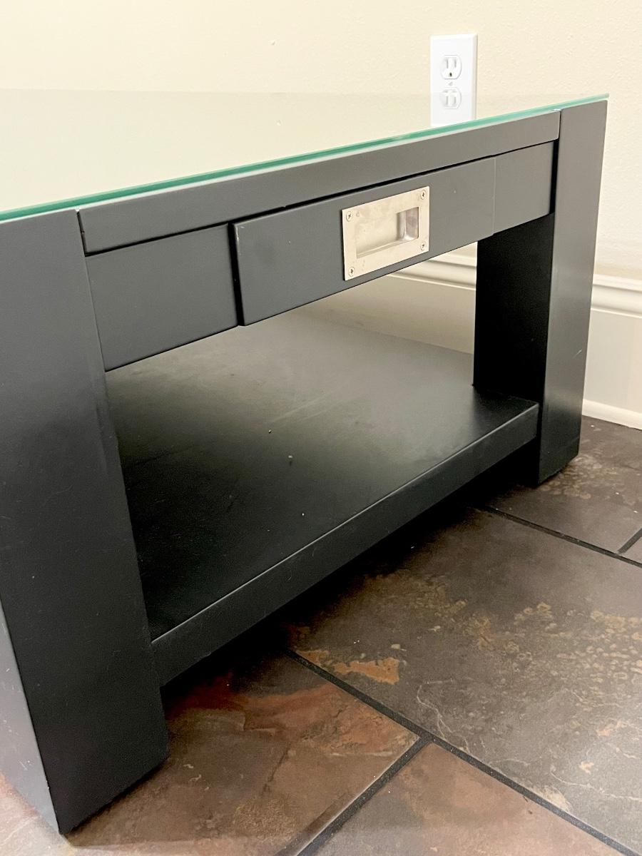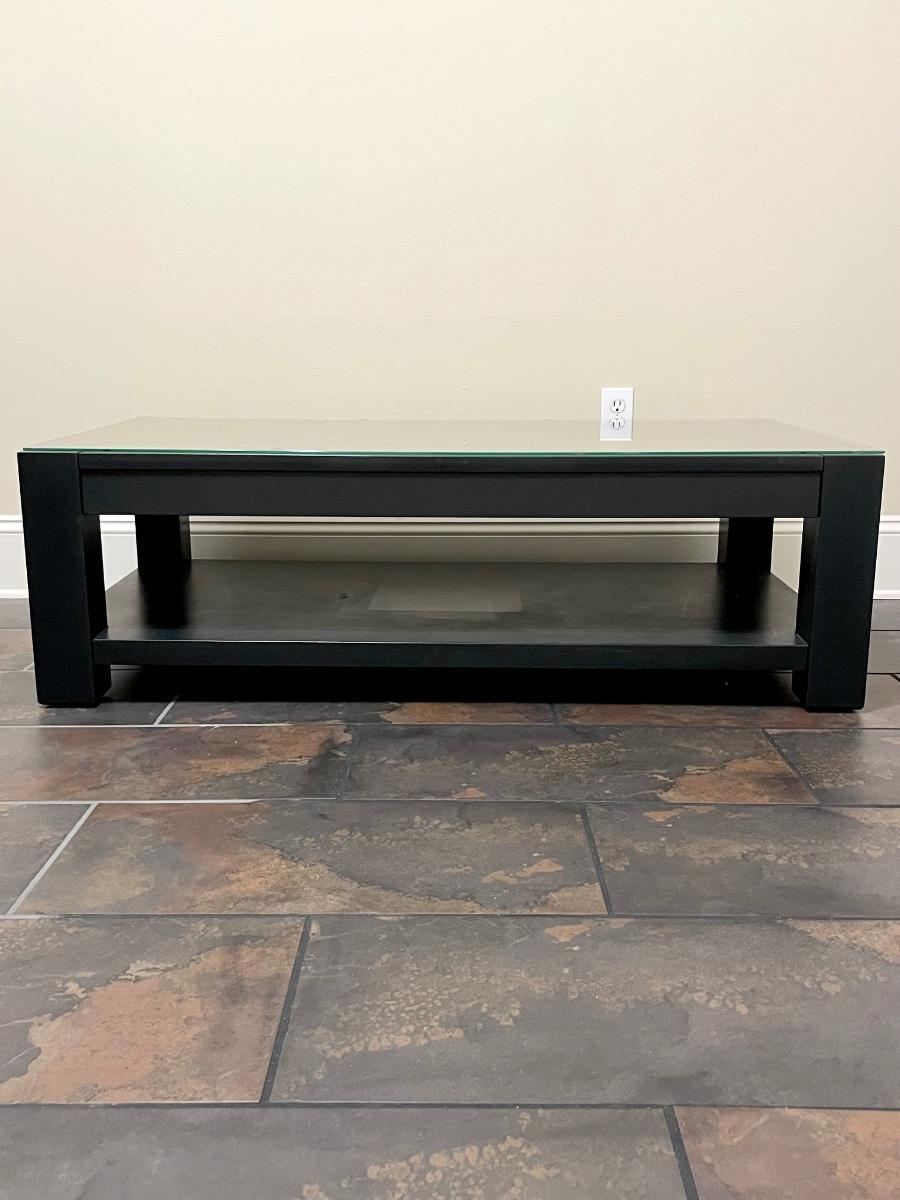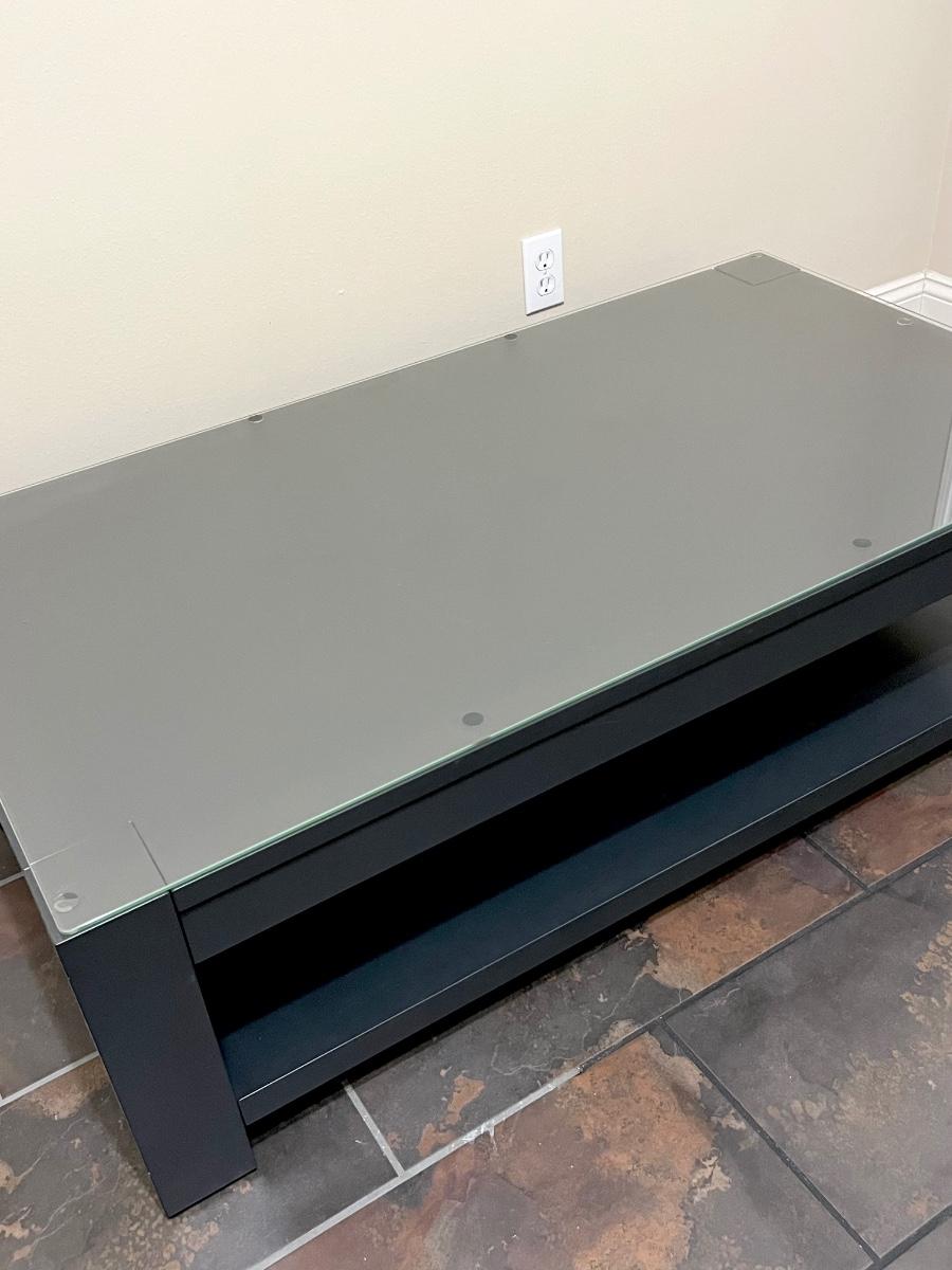 16” H.x 51” W x 21.5” D ~ Includes protective glass top which is in very good condition minimal scratches