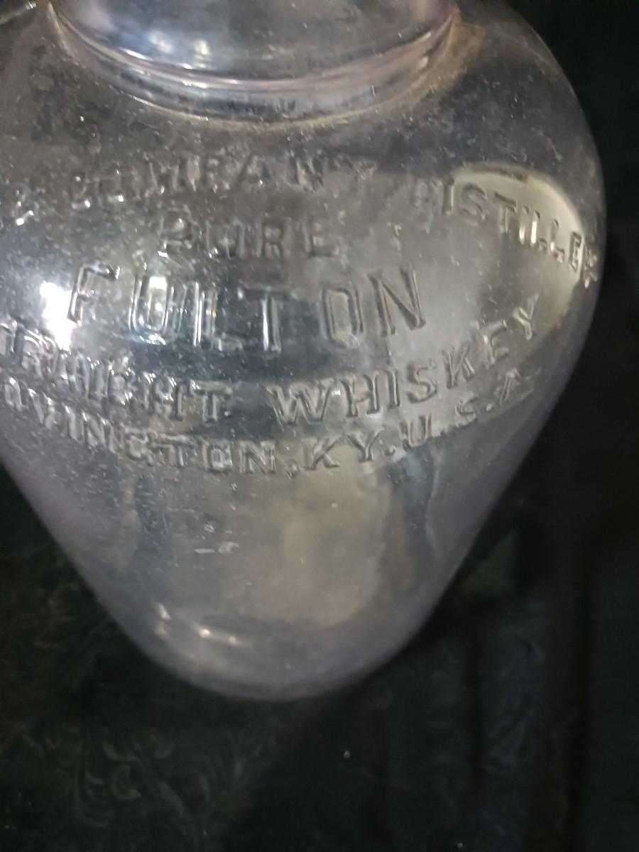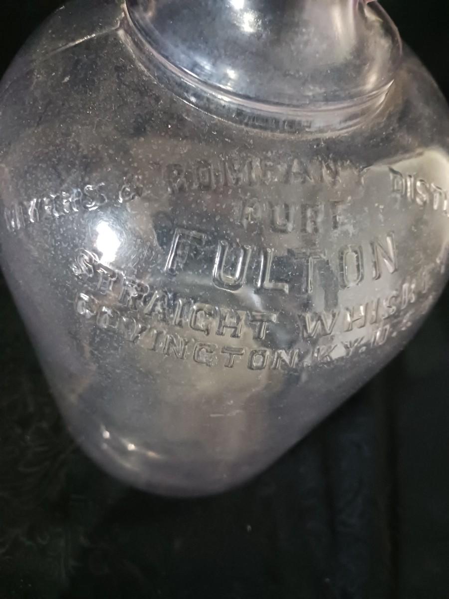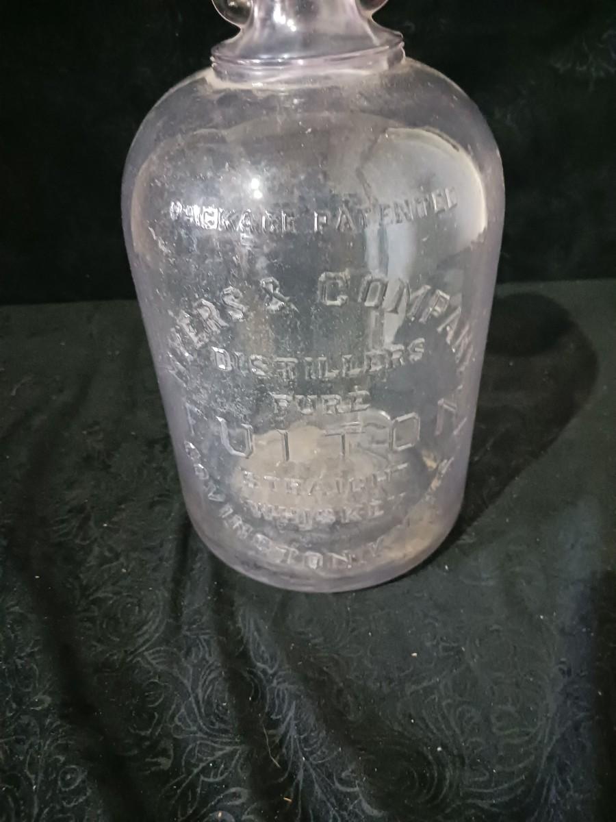 MYERS & COMPANY PURE FULTON STRAIGHT WHISKEY BOTTLE WITH RAISED LETTERING