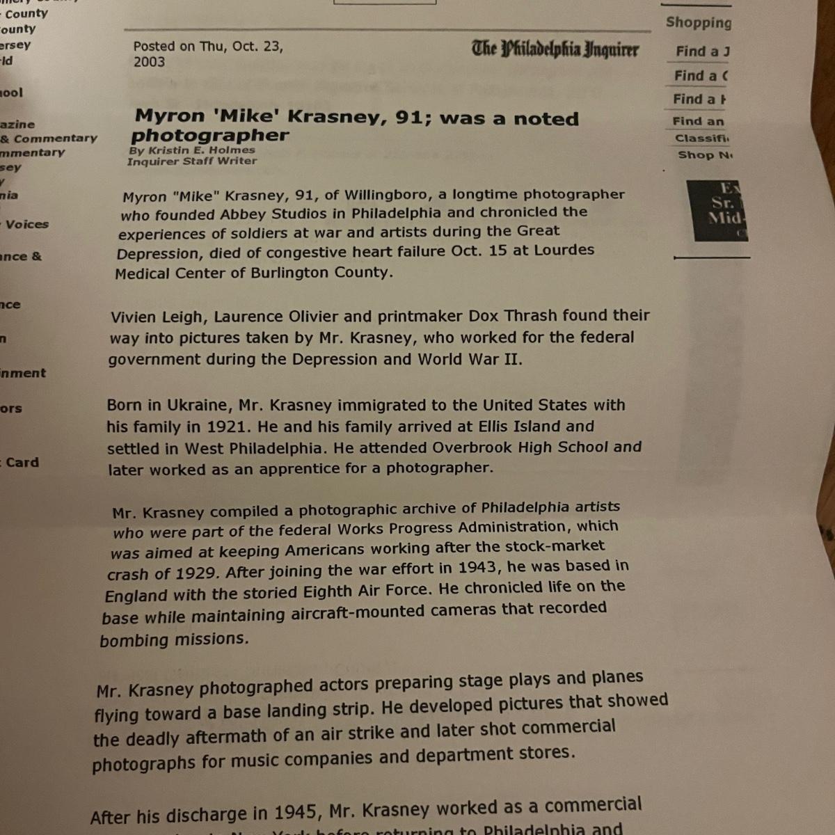 Myron Krasney and Richard B. Johnson Framed Photographs (H-DZ)