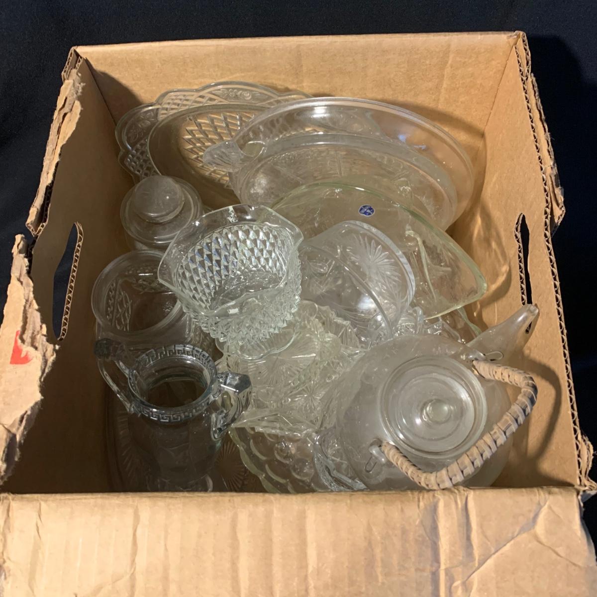 This mystery box contains about 20 items and features glassware. The value of the items in the box is about $50 or more! Not available for preview. Buy as is. Shipping available. Bid for a surprise!