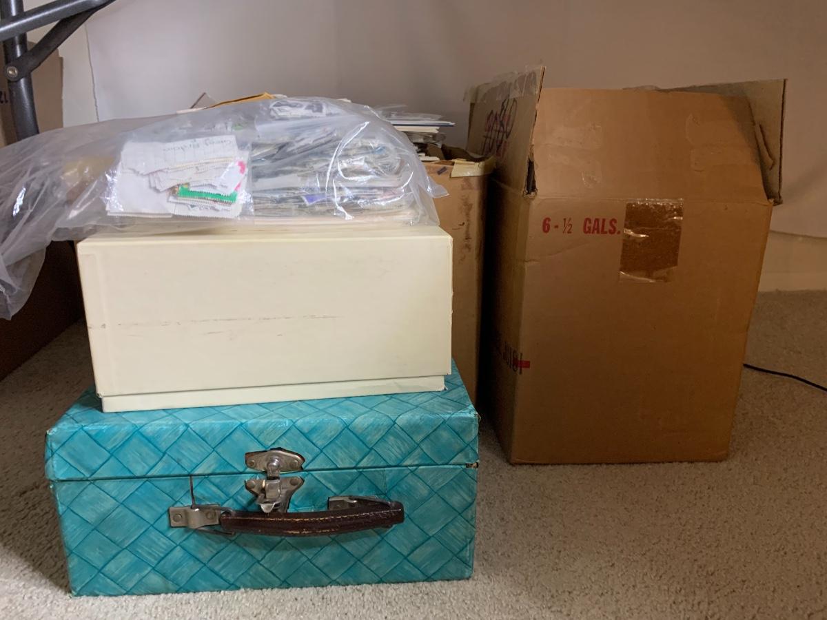 Four boxes of old stamps from life long stamp collection.