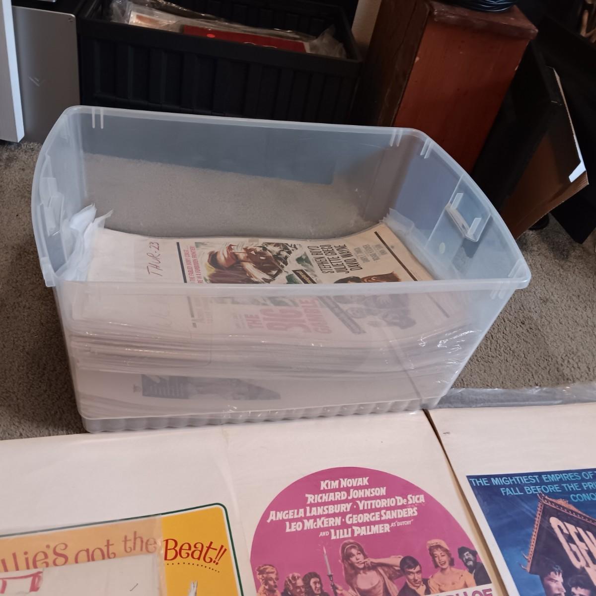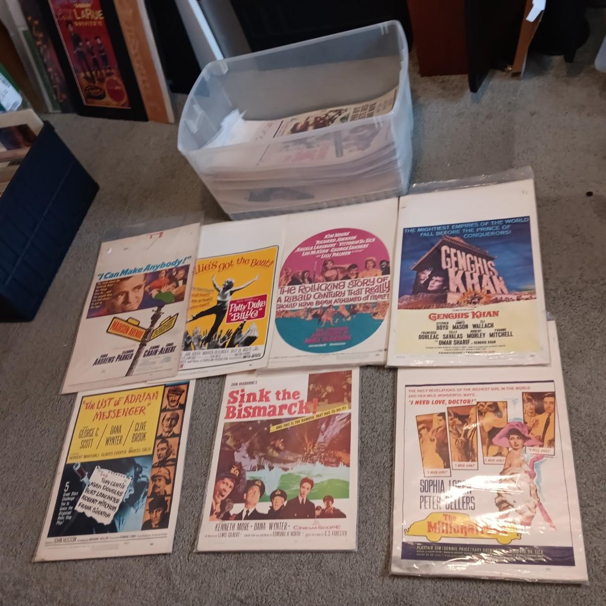 *MYSTERY* STORAGE TOTE HALF FULL OF MOVIE THEATRE WINDOW CARDS