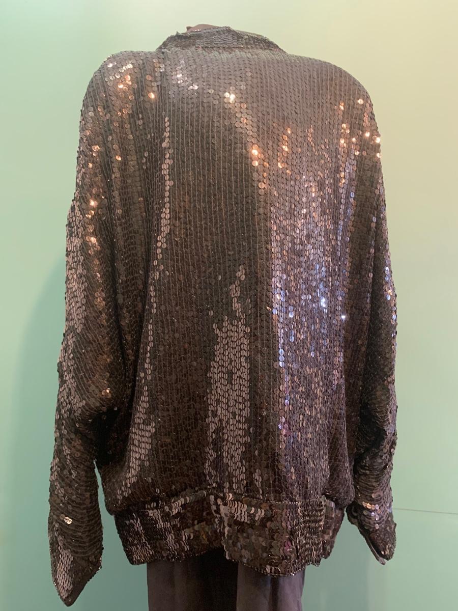 Mystical Elegance: Candlelight by Jainson’s Black Sequin Silk Batwing Jacket - Size Large