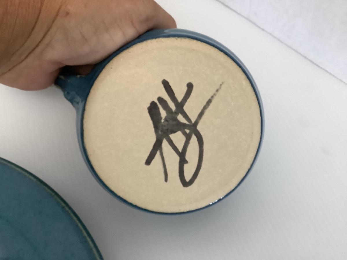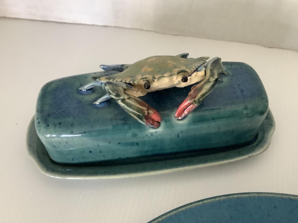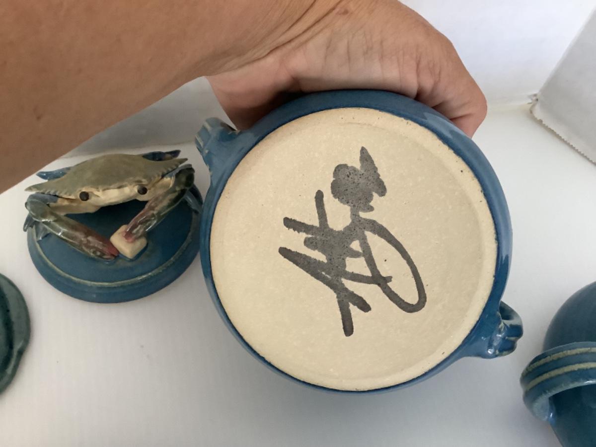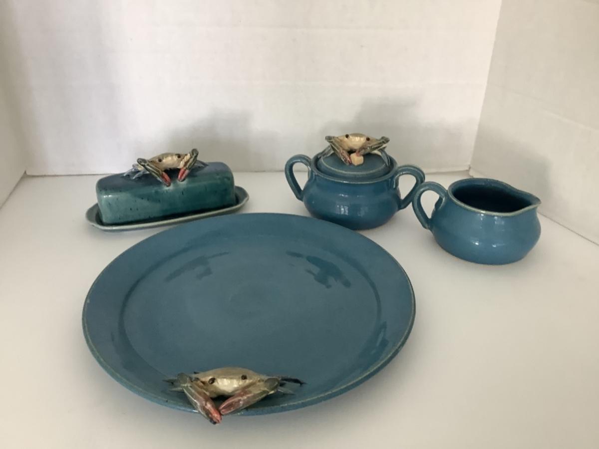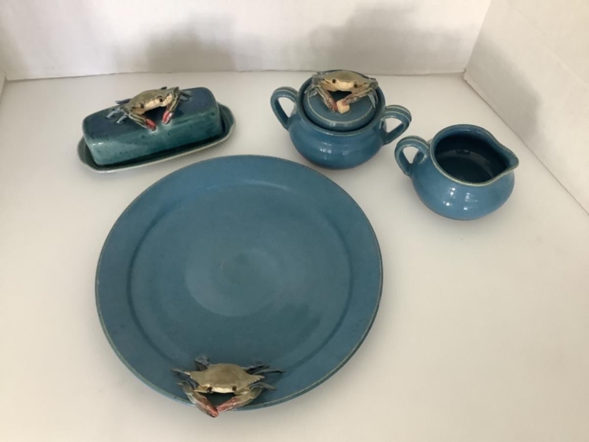 N 1017 Four piece Signed Blue Crab Pottery Set