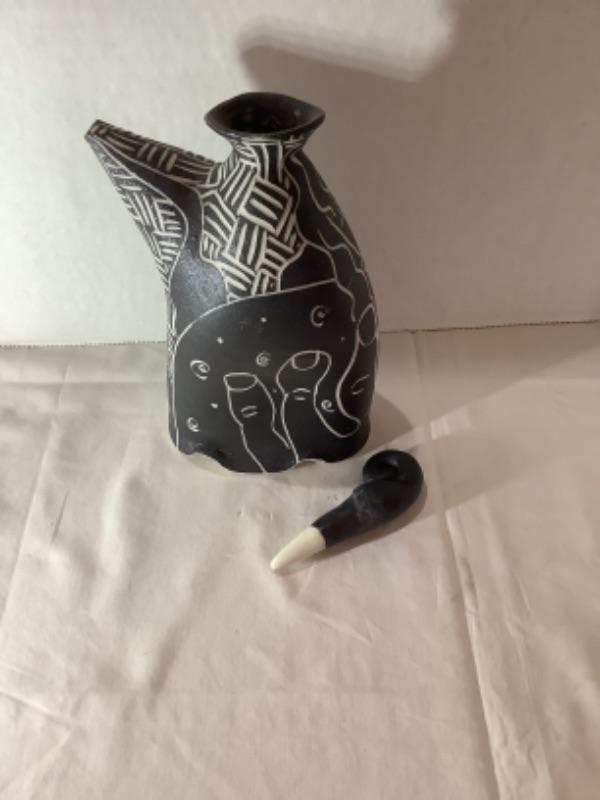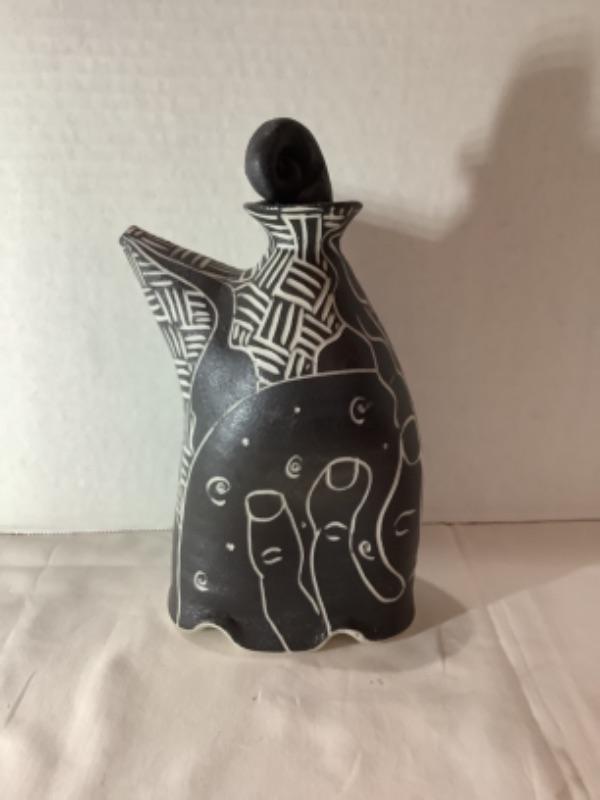 Signed by Mia Tyson, Hand Crafted Clay Art, Pitcher with Stopper