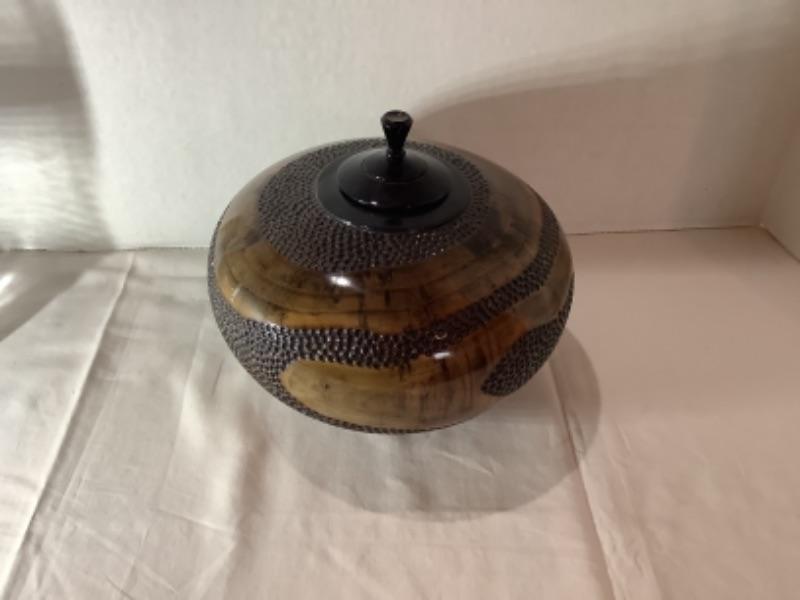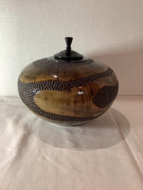 N - 1494 Artesian Crafted / Signed Wooden Jar with Lid by Dixie Biggs 2008