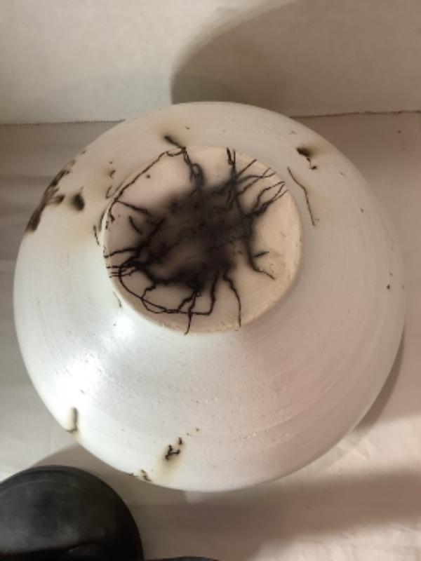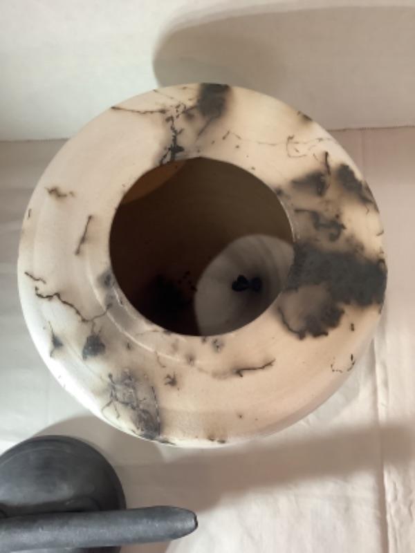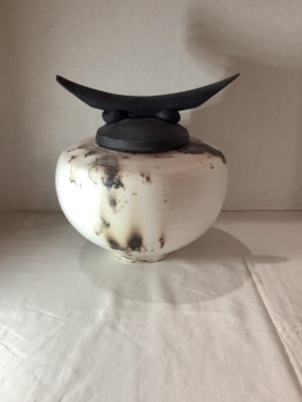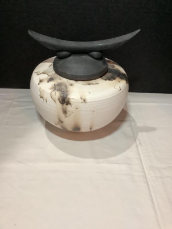 Artesian Crafted Horsehair Raku Pottery Lidded Vessel