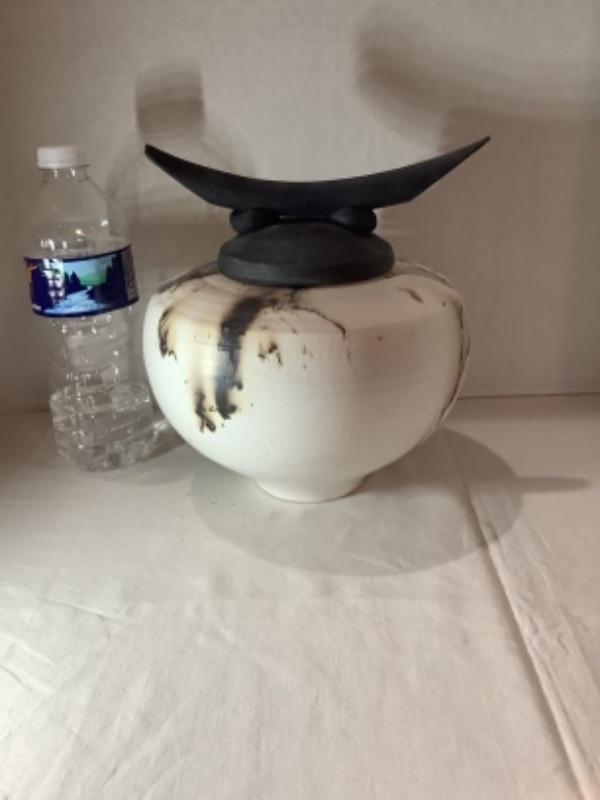 N - 1495. Artesian Horsehair Raku Pottery Lidded Vessel