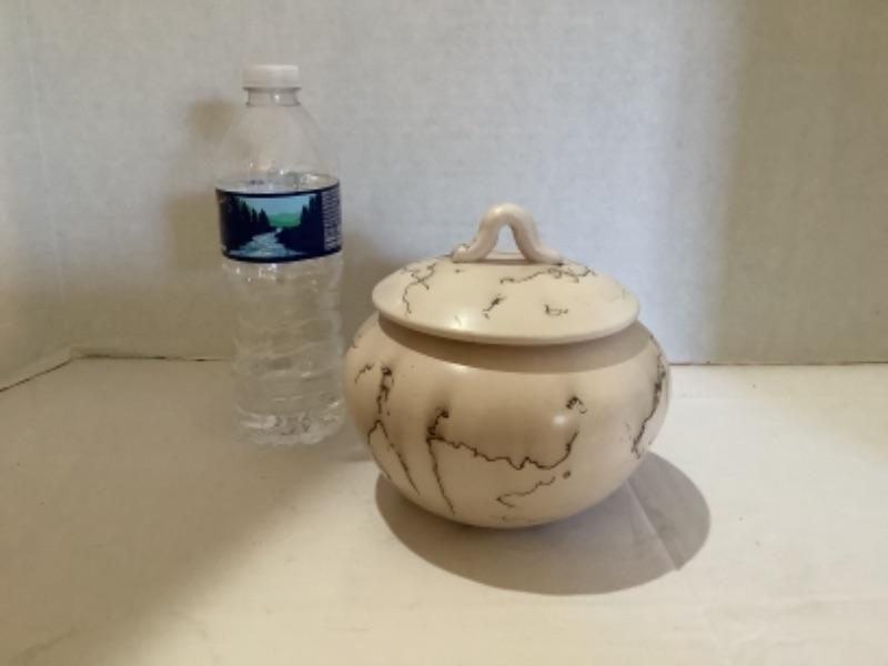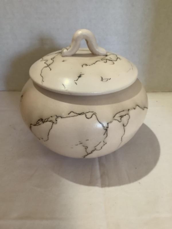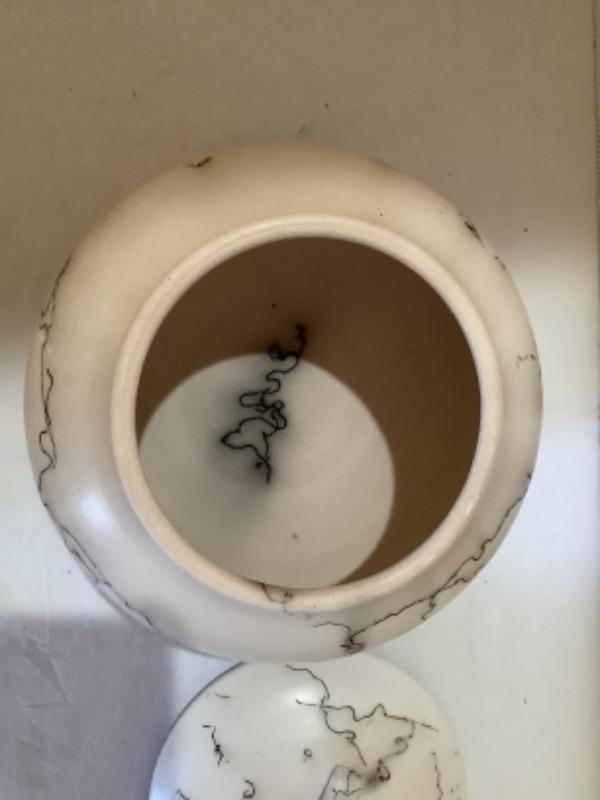N - 1507  Artisan Signed Horsehair Raku Pottery Jar with Lid  (MLM)