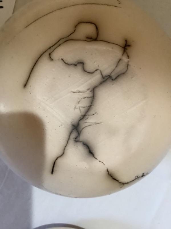 Artisan Signed Horsehair Raku Pottery Jar with Lid, Signed MLM