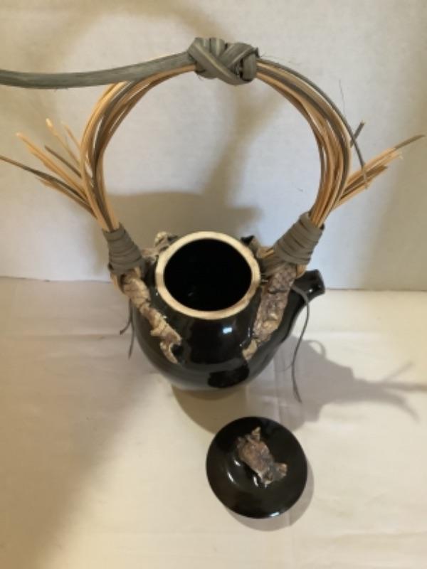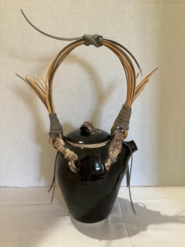 N - 1510 Crafted by Susan Fox Hirschmann, Glazed Pottery Tea Pot with Natural Fibers