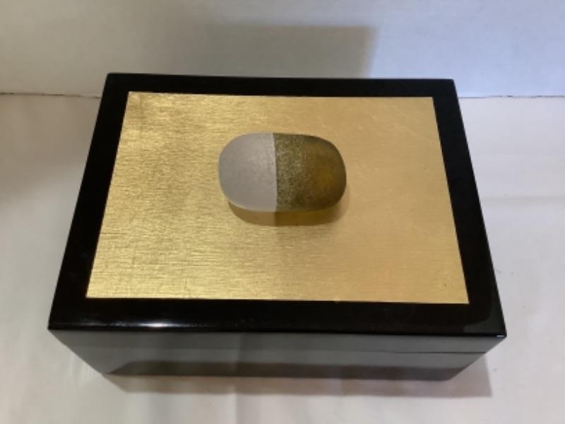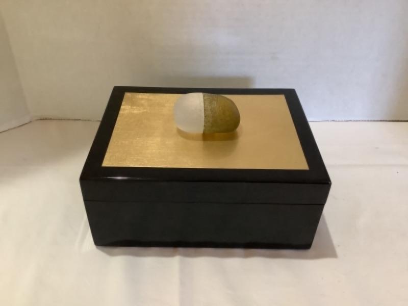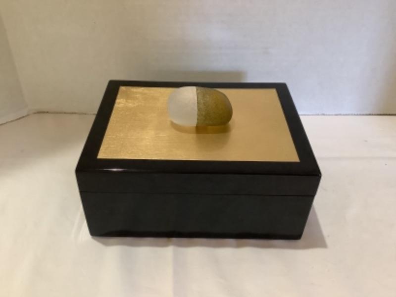Robert Held Art Glass, Creator of the Knob on a Hand Crafted Lacquered Wood Box w Velvet Lining.