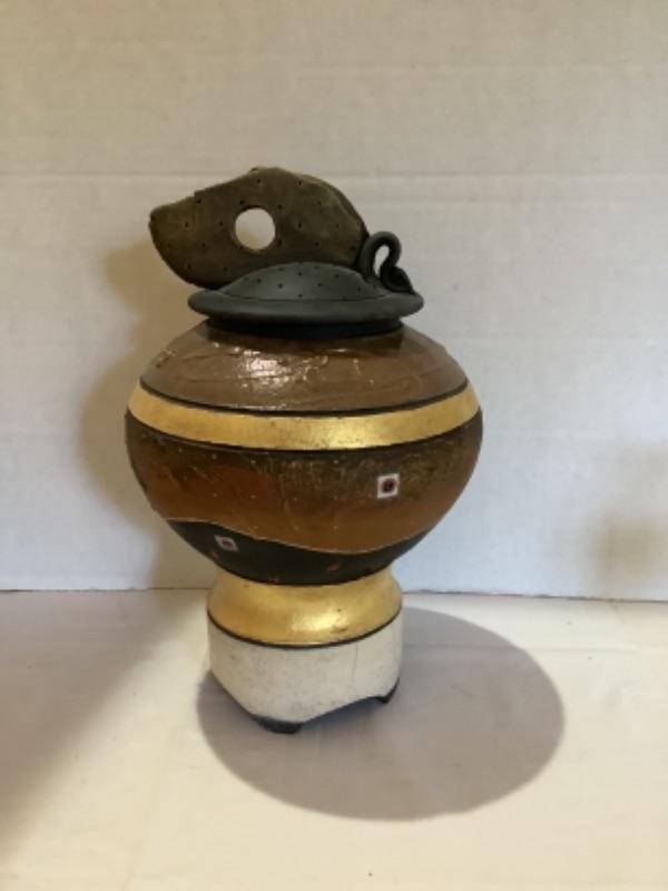 N - 1523 Signed Raku Lidded Pottery Vessel by Robert Carlson