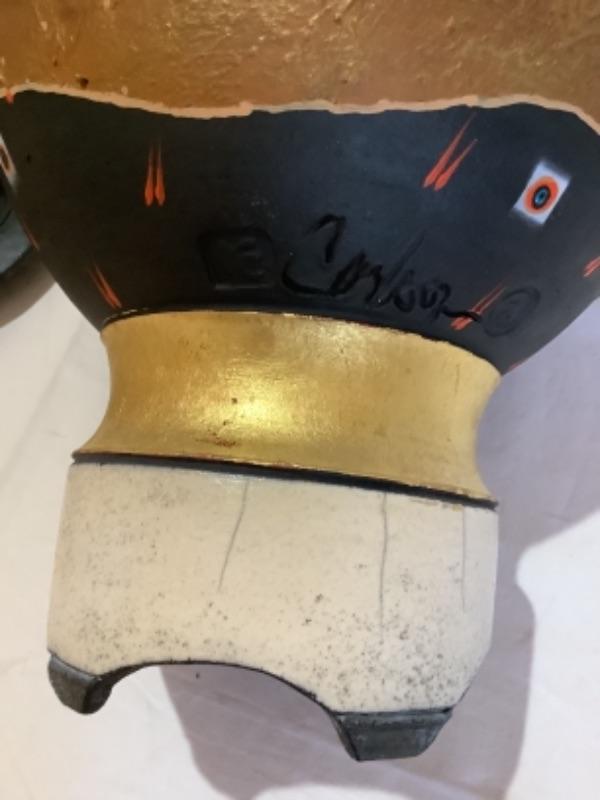 Signed Raku Lidder Pottery Vessel by Robert Carlson -
