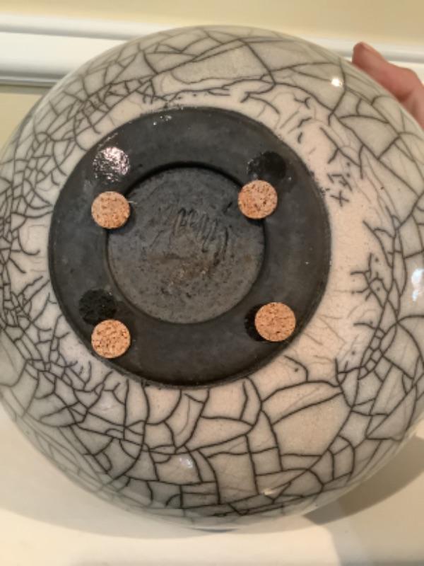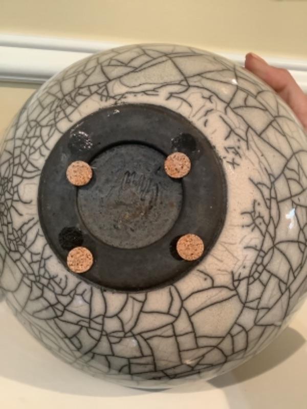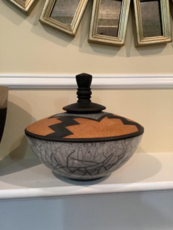 N - 1531  Two Piece Artisan Signed Raku Bowl with Lid