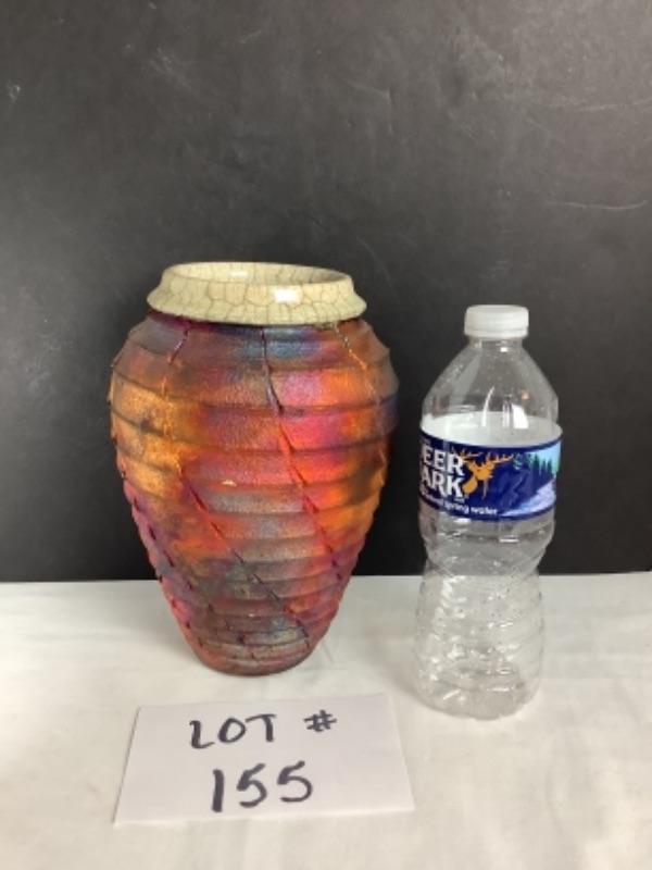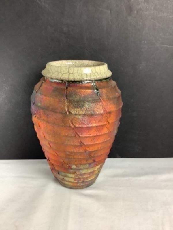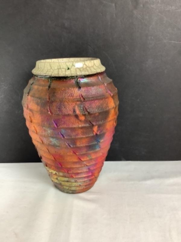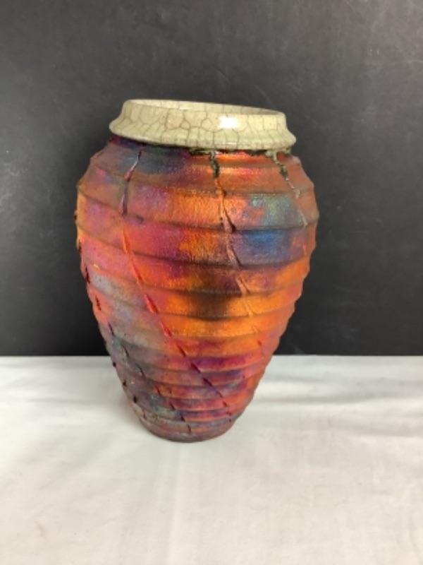N - 155  Metallic Painted Raku Pottery Vase by Bruce Odell