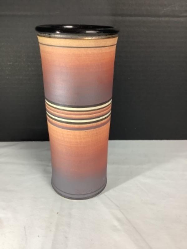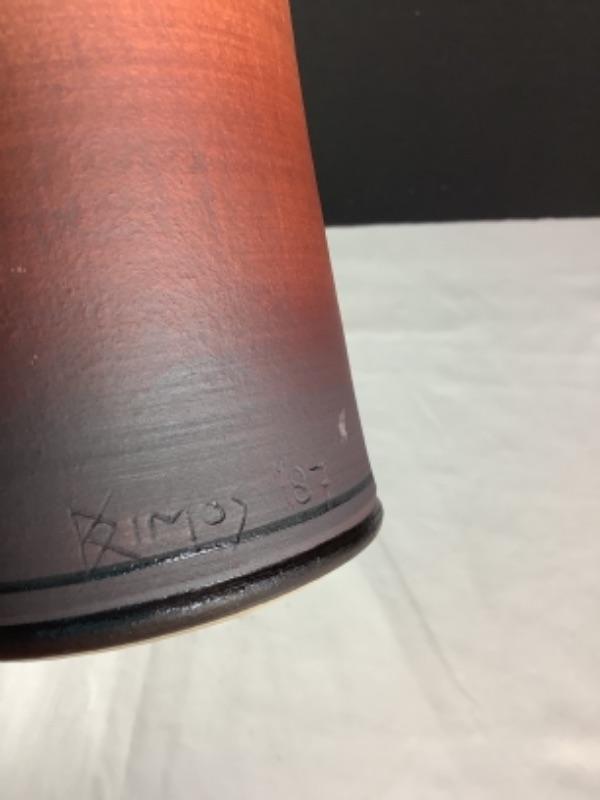 Artisan Signed ( Kimos ? “˜87 ) Stoneware Vase with Glazed inside -