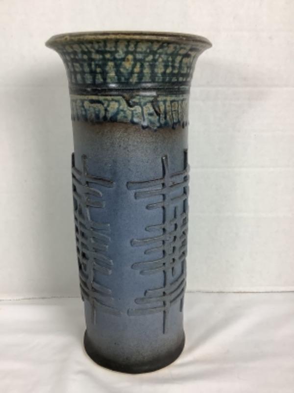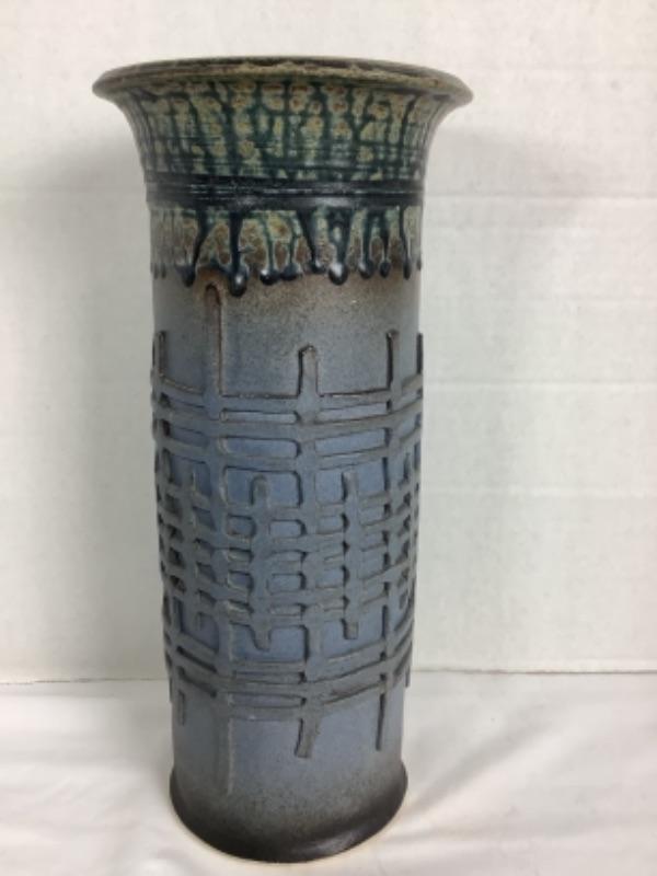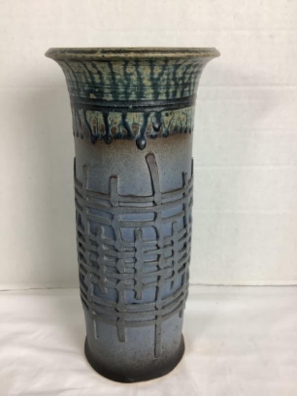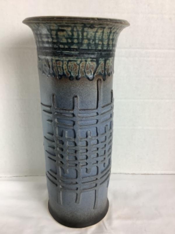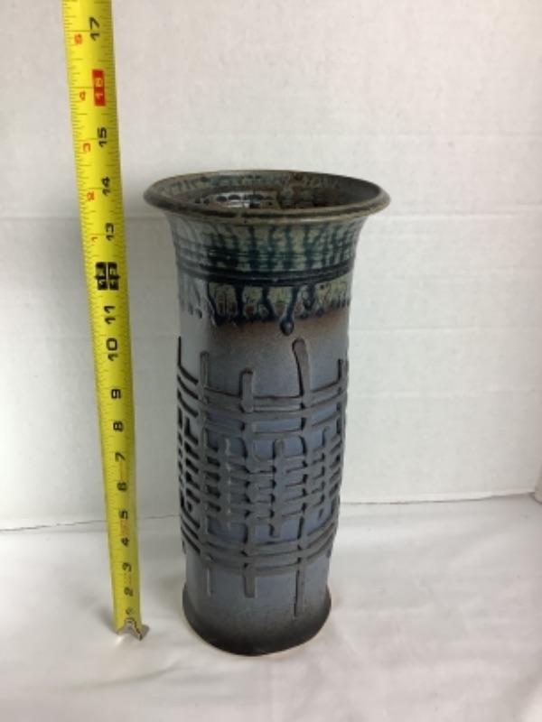 Artisan Signed / Crafted Raku Pottery Vase with Unique Raised Design -