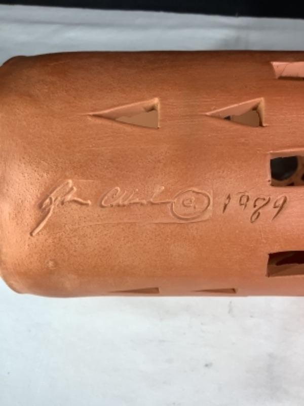 N - 171  Terra Cotta Luminaria Signed / Crafted by Robin Chlad  1989