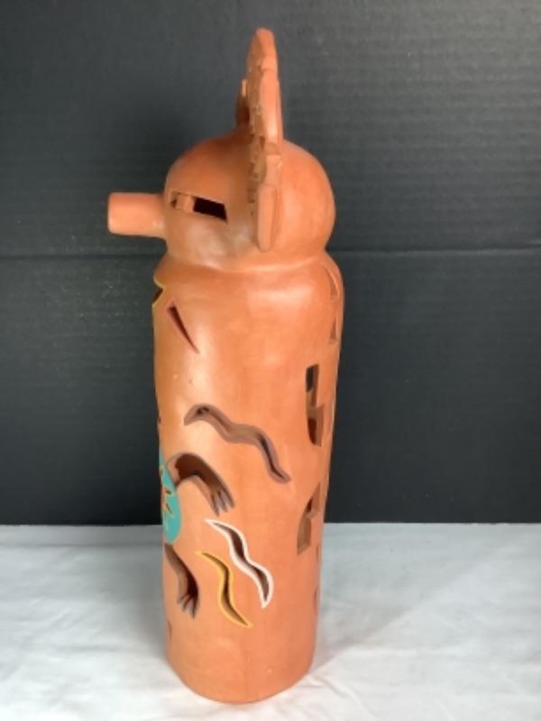Terra Cotta Luminaria Crafted and Signed by Robin Chlad 1989 , All Luminaries are made of Terra Cotta Earthen Ware, Some are Painted ( as this piece is ) and each is a whimsical character that reflects life in the dessert and southwest culture. ( Turtle )