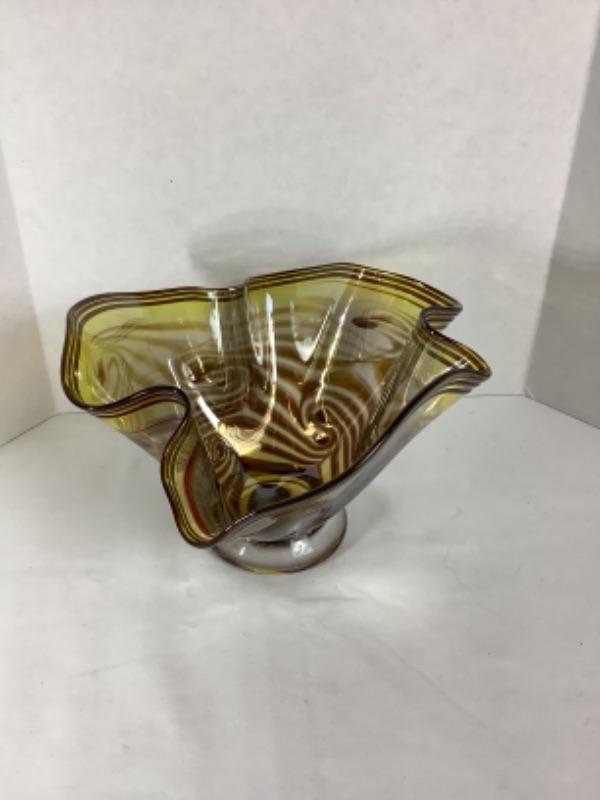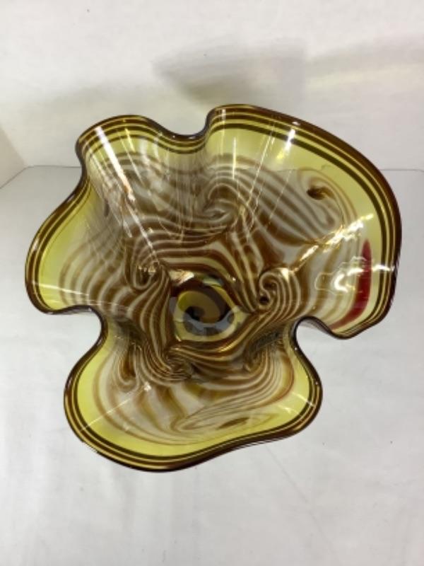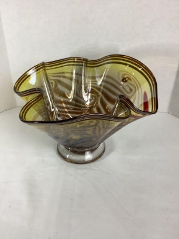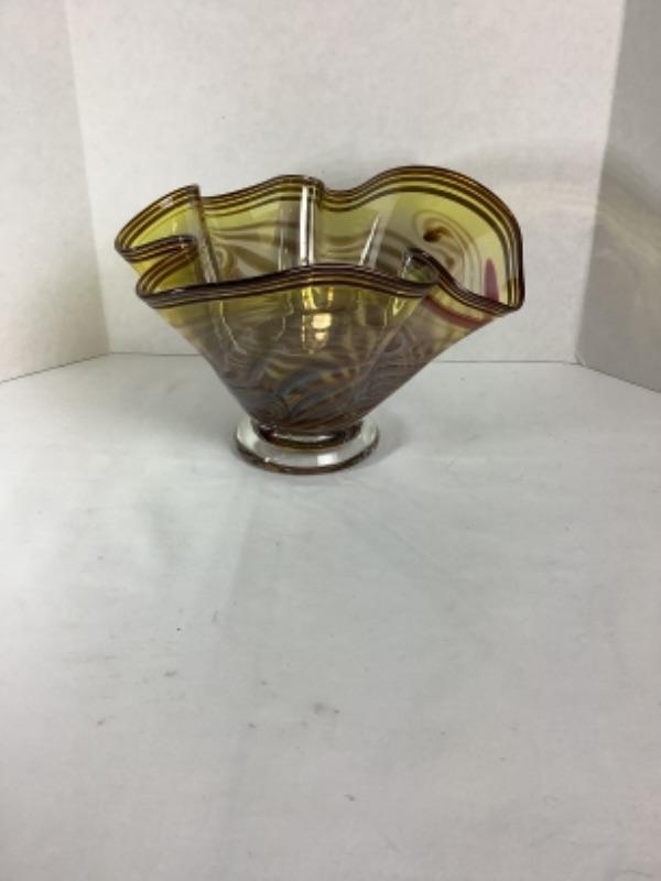David Reade Crafted & Signed ,Amber, Folded/Wavey Glass Bowl-