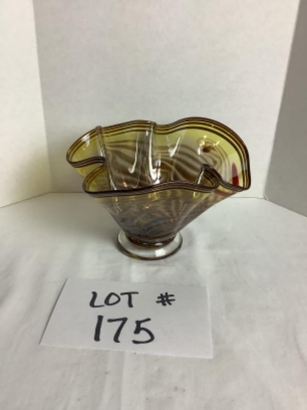 N - 175 David Reade Crafted & Signed Amber, Folded/Wavey Glass Bowl