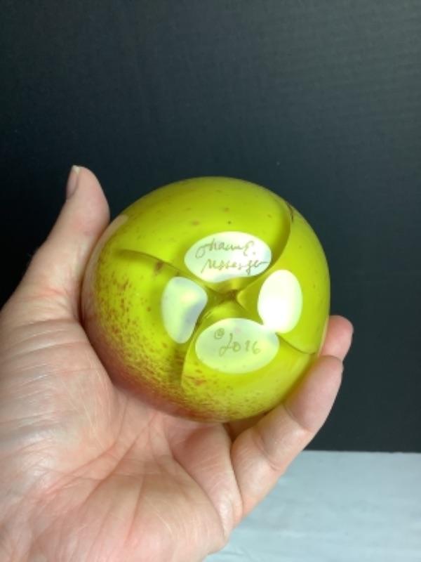 N - 189 Signed / Crafted by Shawn E. Messenger 2016 Pear Paper Weight