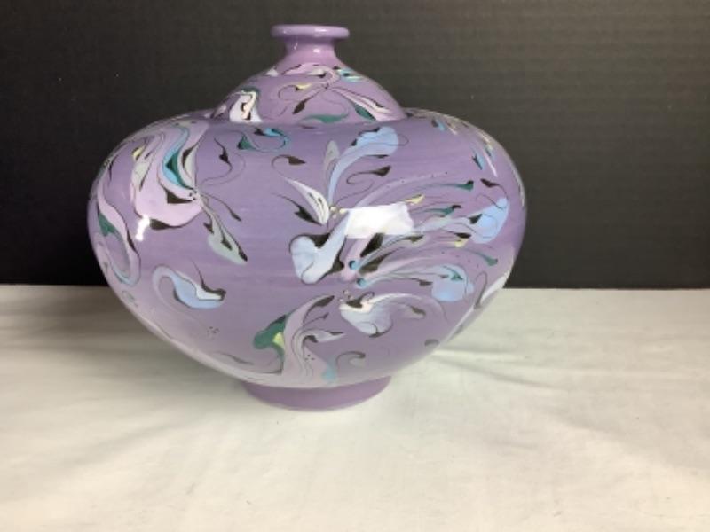 N - 192  Artisan Signed ( Sarah ) Glazed Pottery Jar