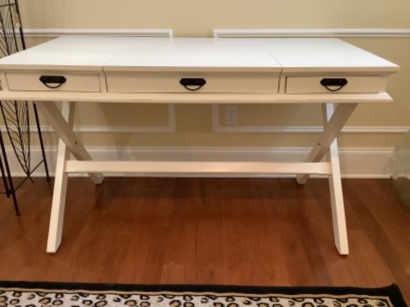 Cottage Barrister White Desk, 3 Drawers ( ! Is inside the center flip up ), Center Flips up to store Computer