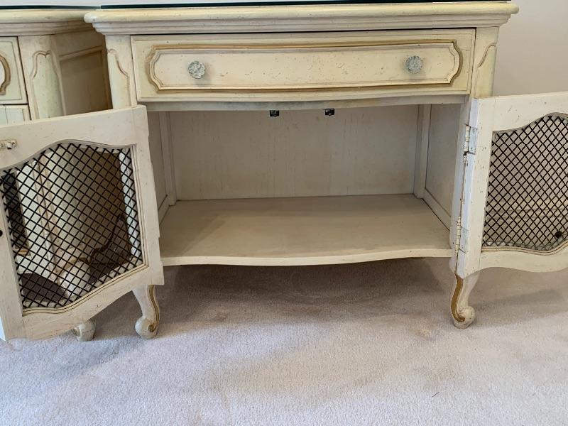End tables and dresser have removal glass